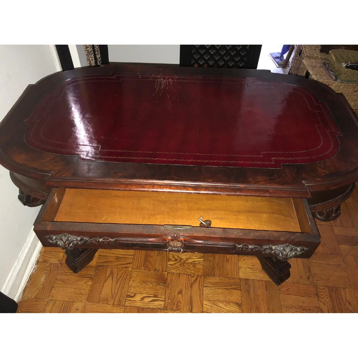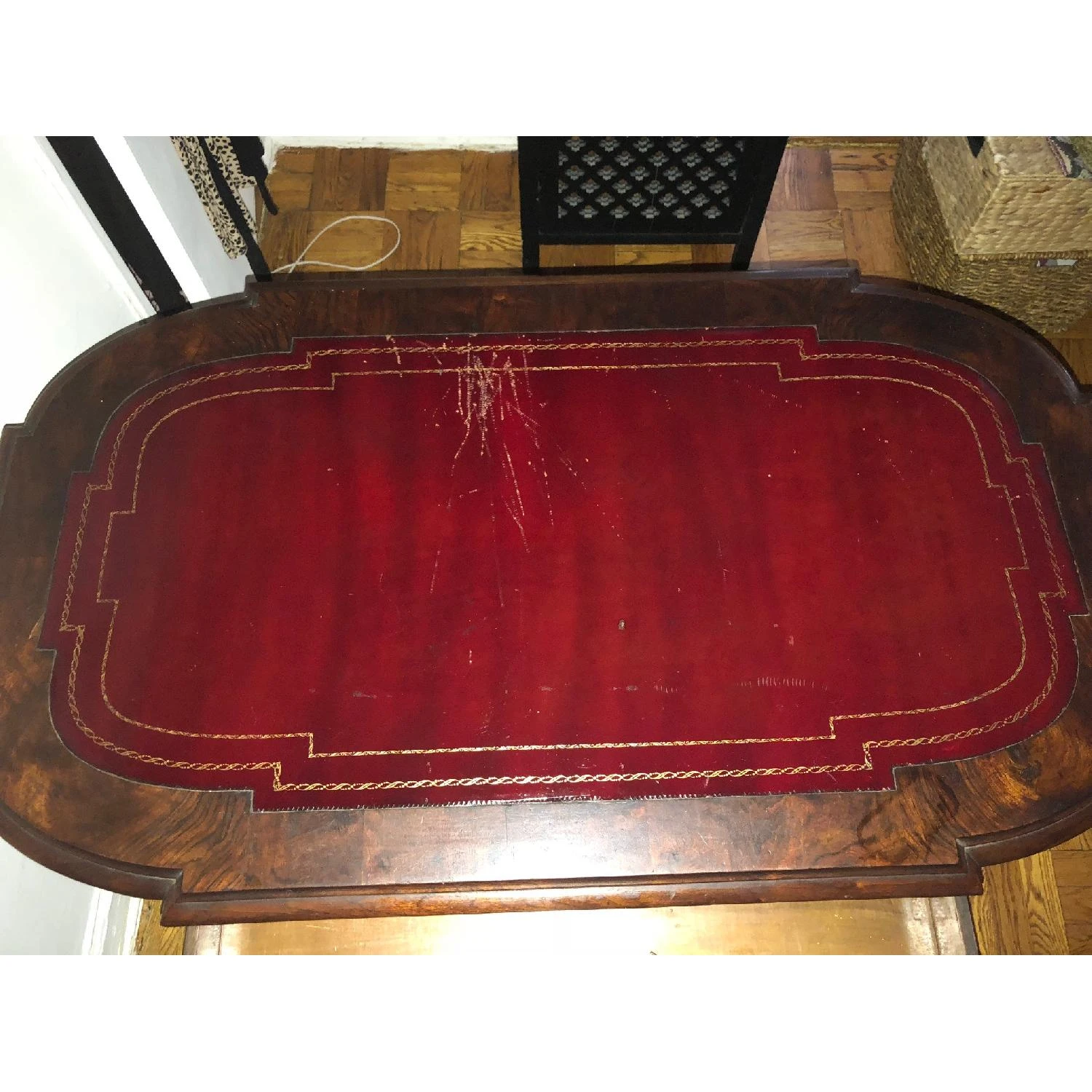 Wear and tear details: Scratches, leather inlay scratched walnut wood in beautiful condition