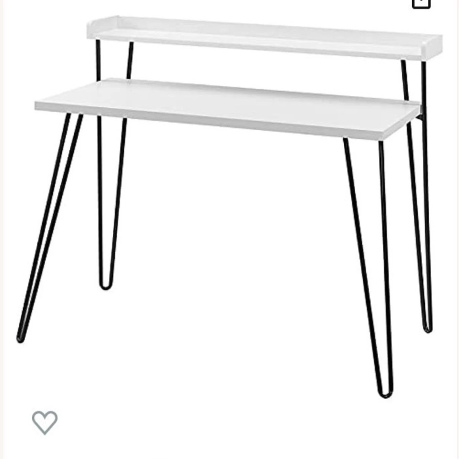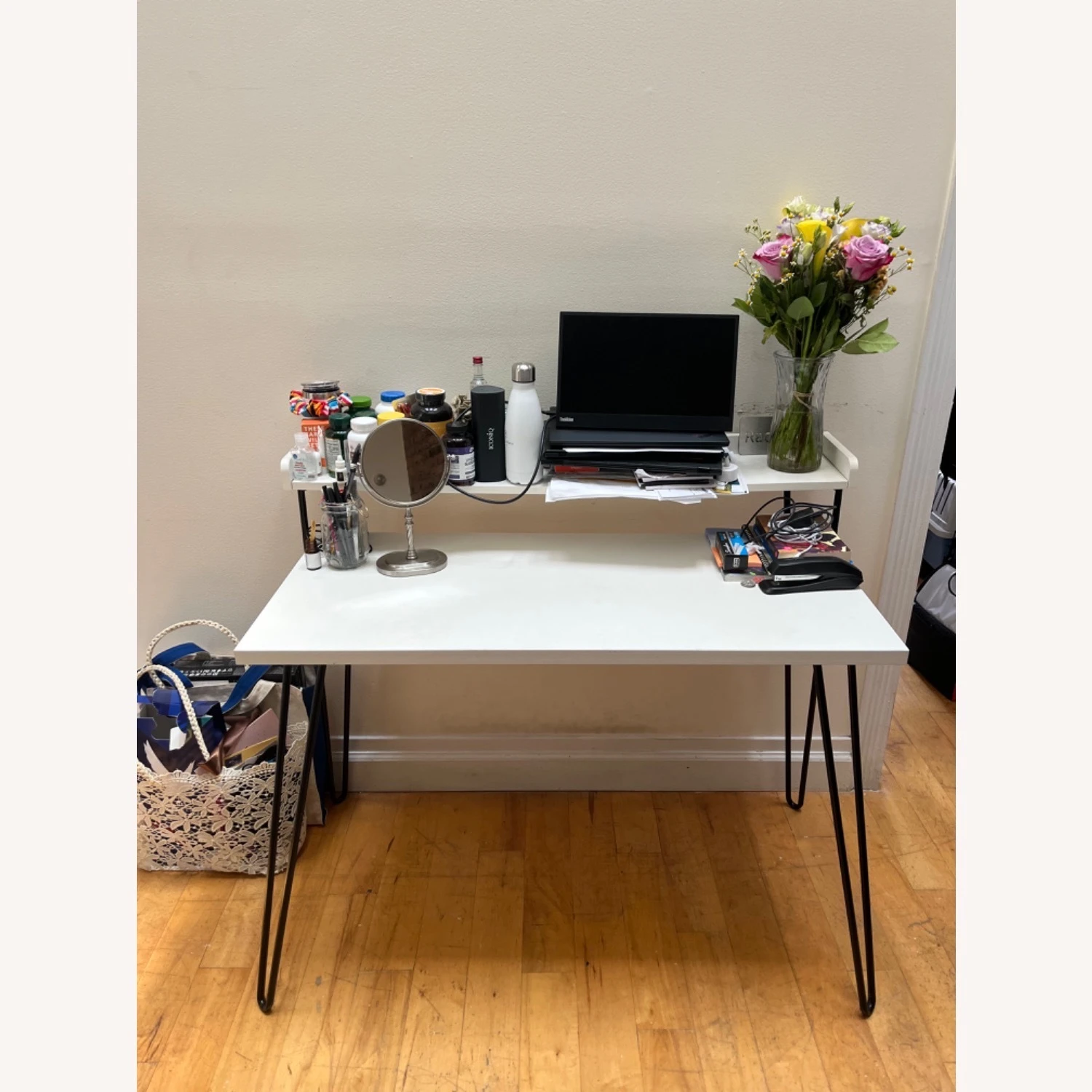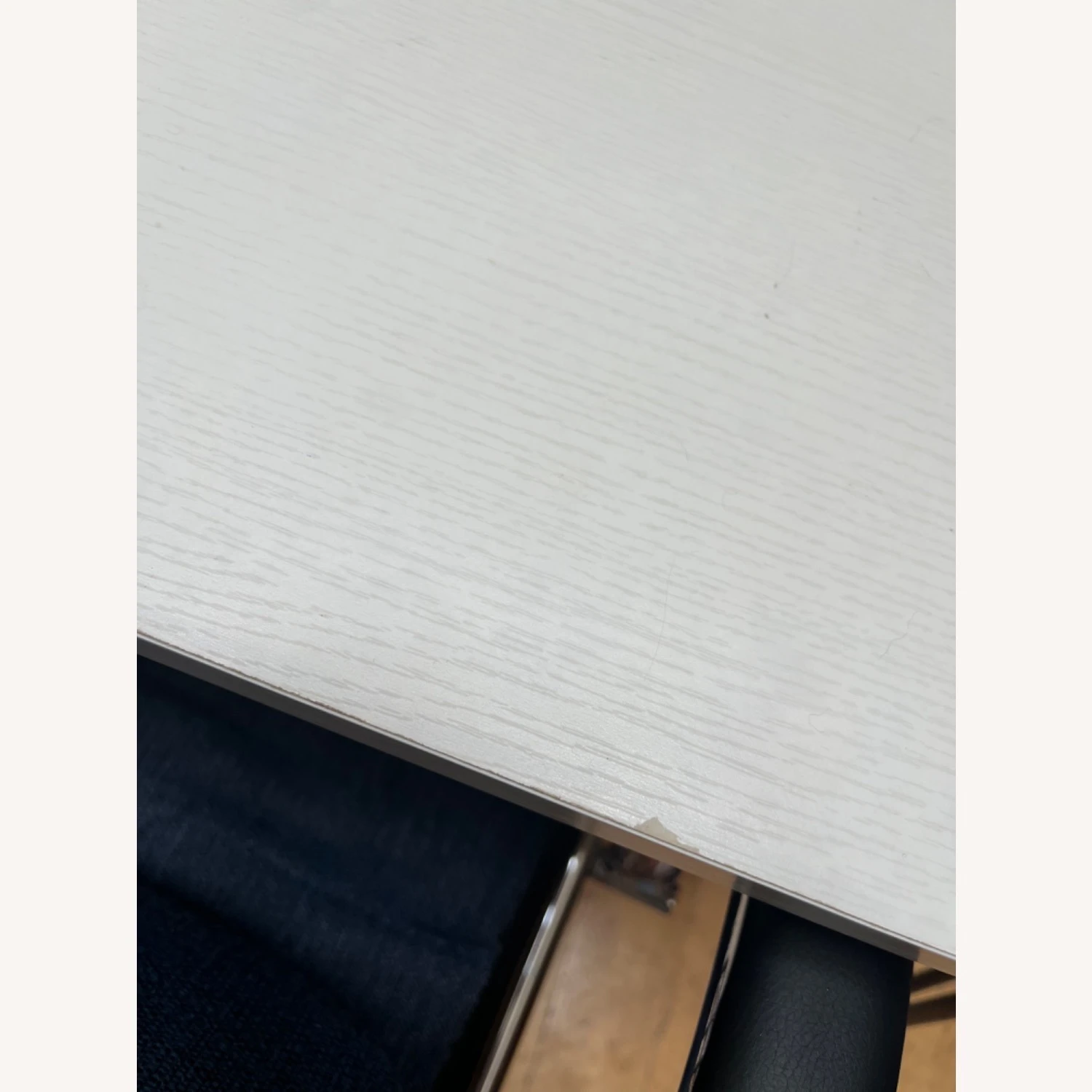 Wood top and metal legs. Slight water marks on top shown in final image.