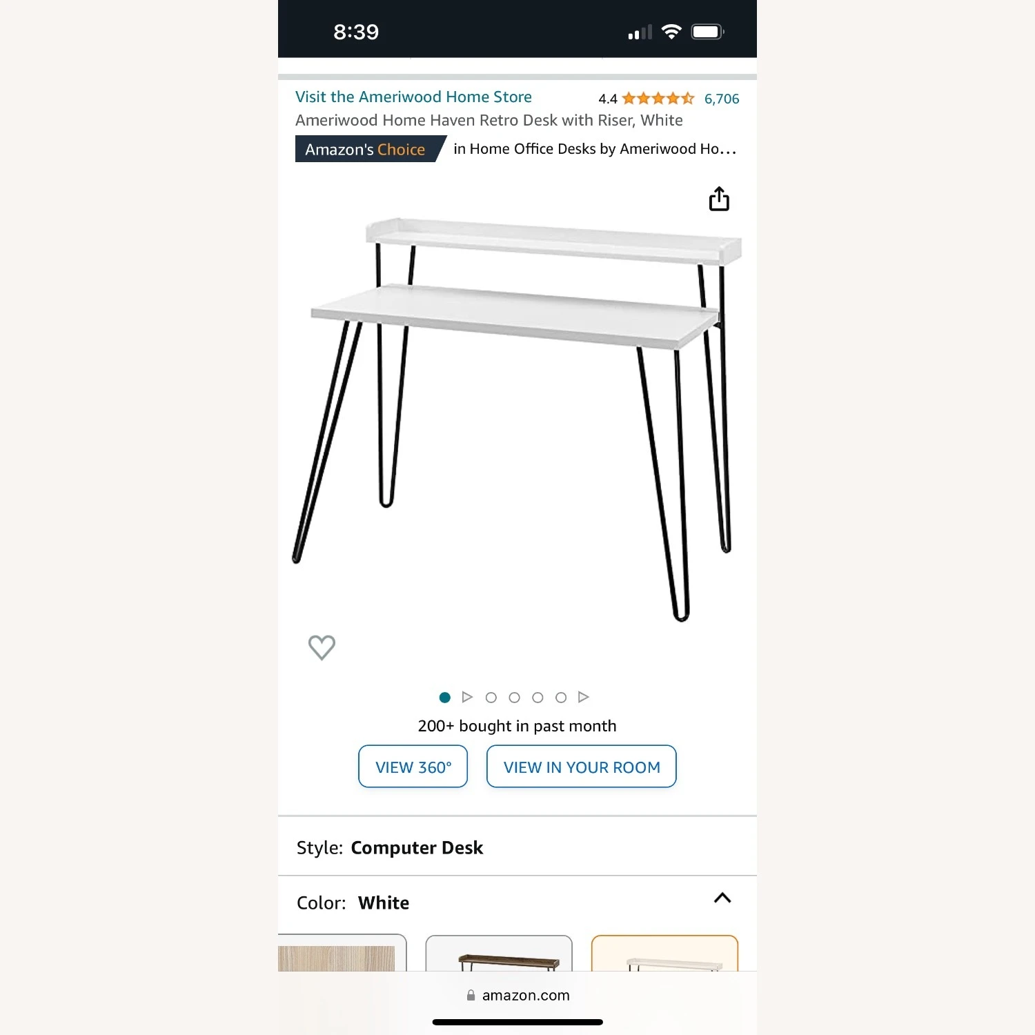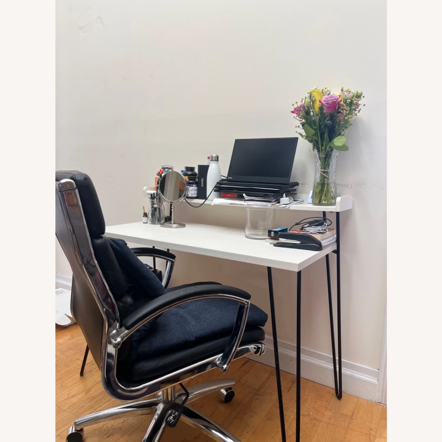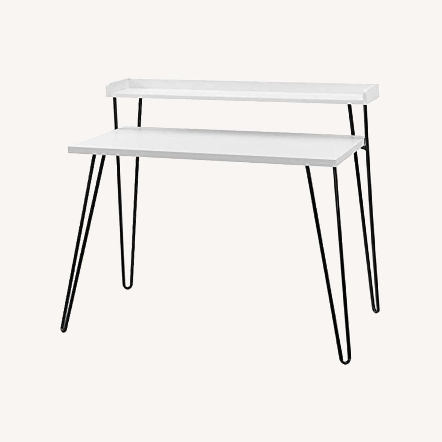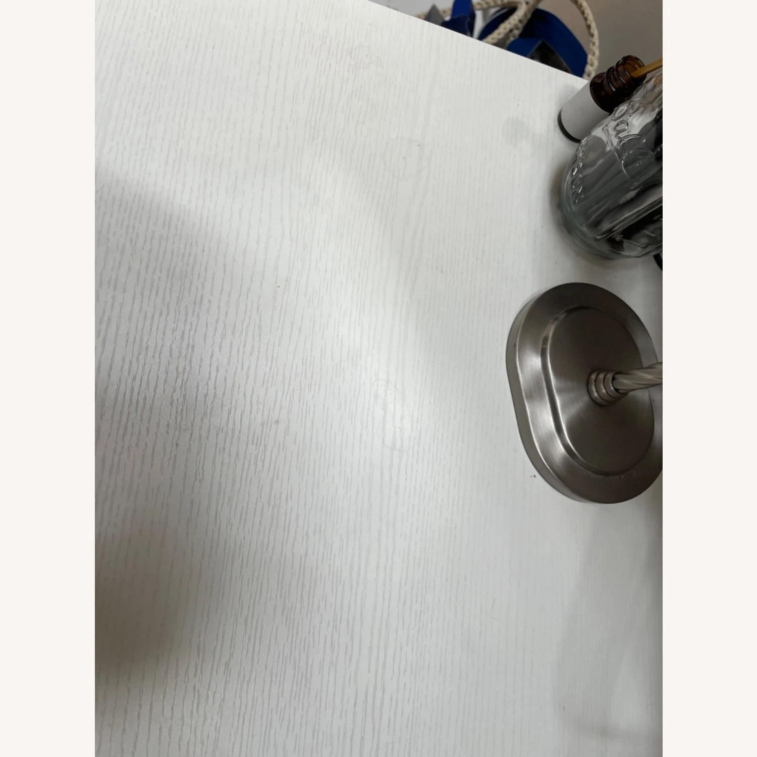 Wood top and metal legs. Slight water marks on top shown in final image.