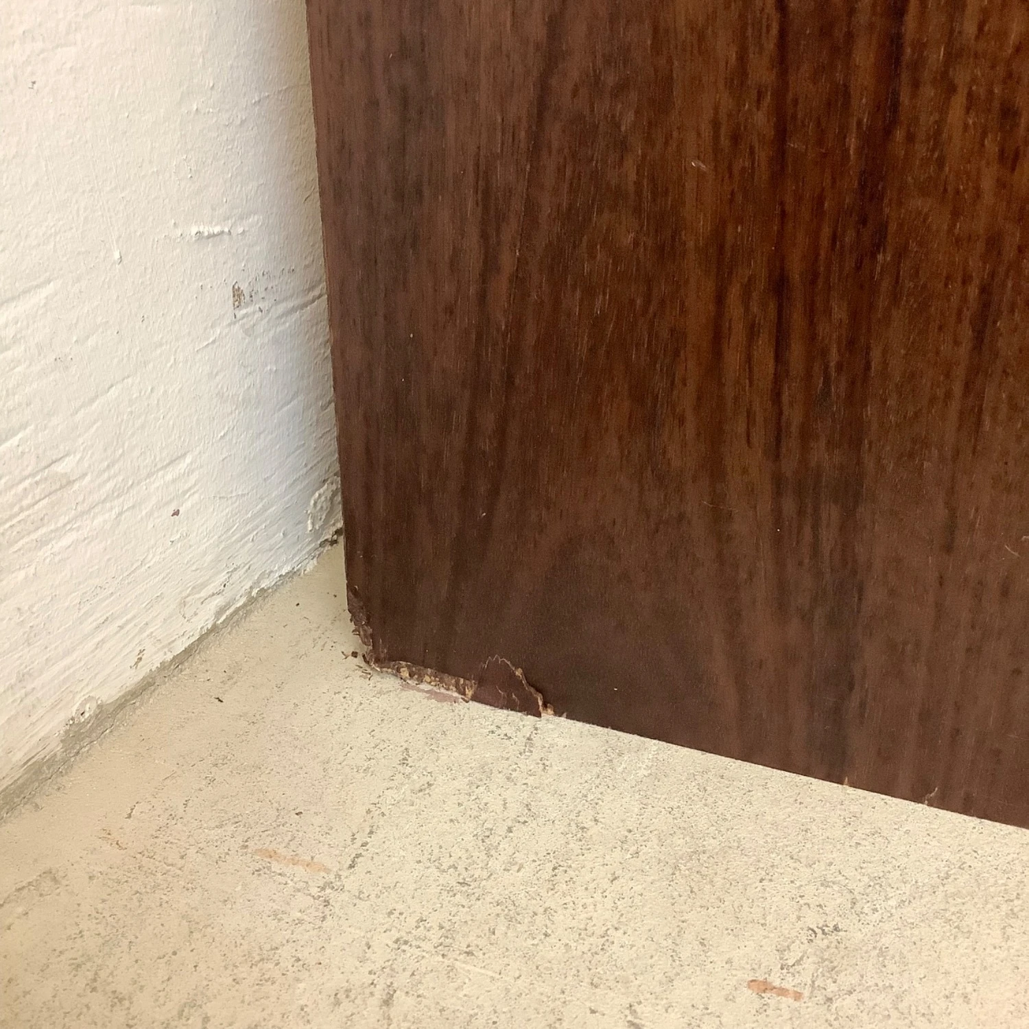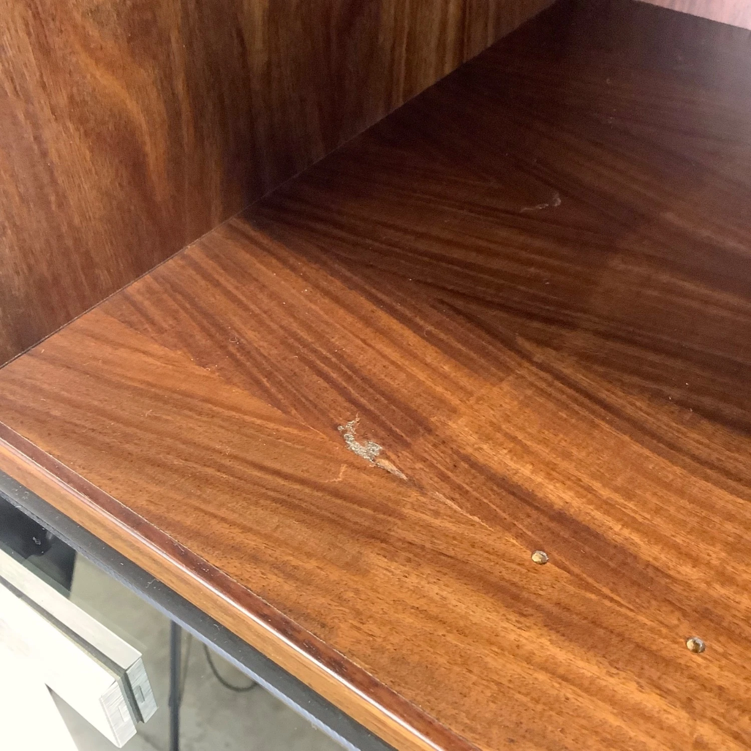 Condition: age appropriate wear, vintage finish worn, scuffs/scratches, edge wear, lighting non functional, discoloration, veneer chips, interior marks, see photos.