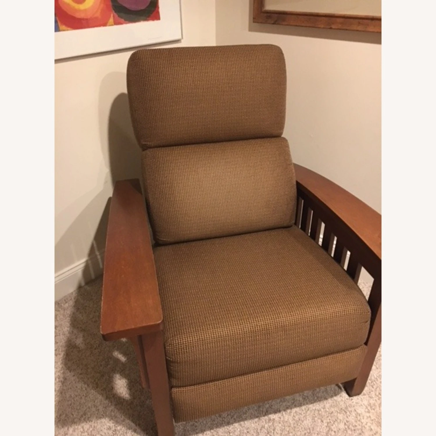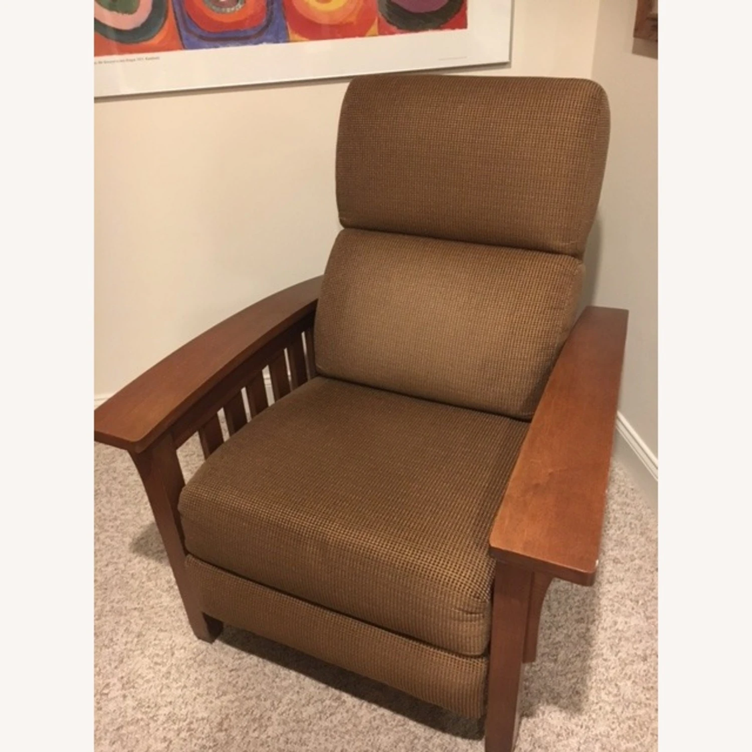 Seller’s Notes: These Ethan Allen recliners are in mint condition! Sit back, relax and enjoy the comfort of a finely crafted piece of furniture that has been meticulously looked after and lovingly cared for. Photos of both chairs are shown – they were purchased at the same time and are identical – and are in identical, excellent condition now.