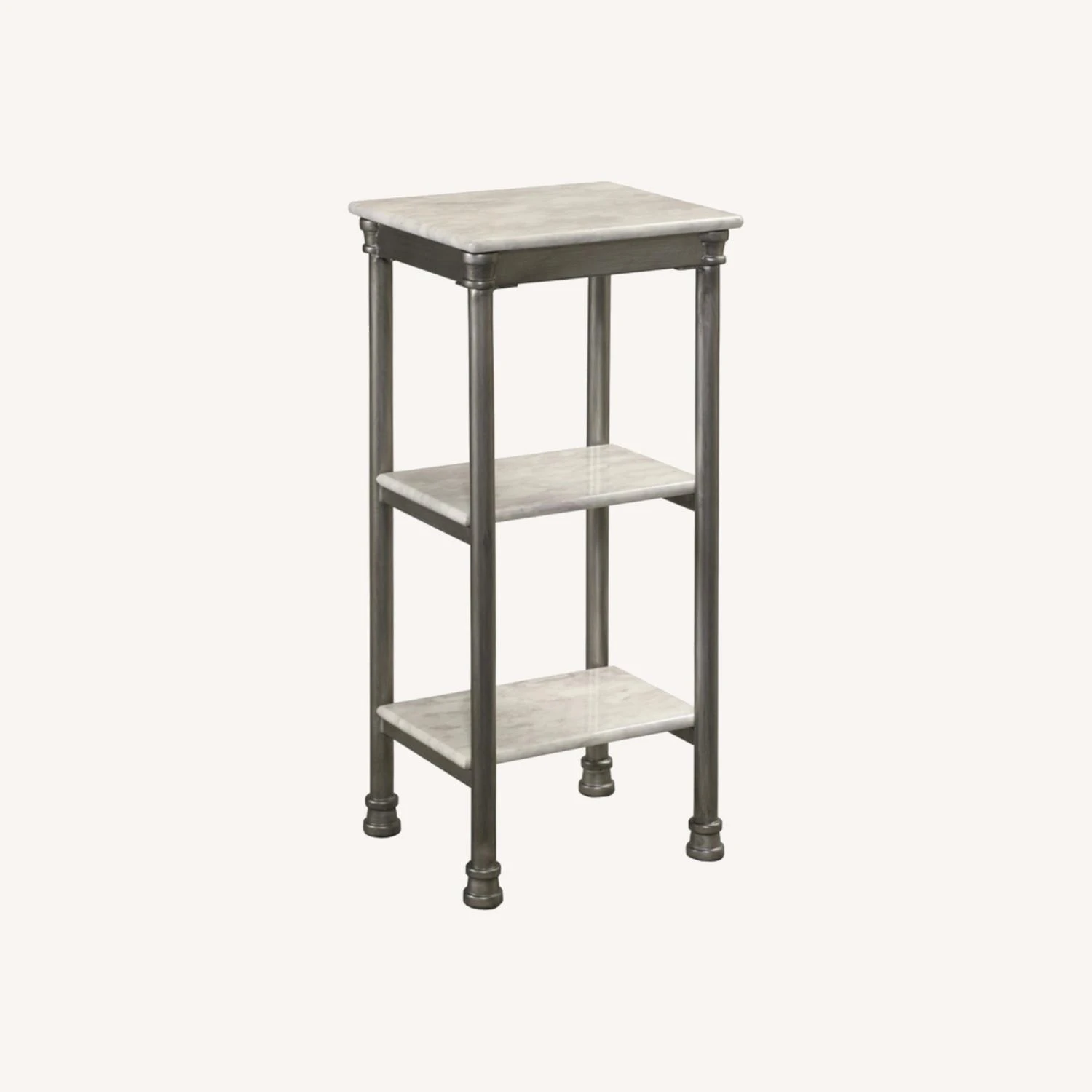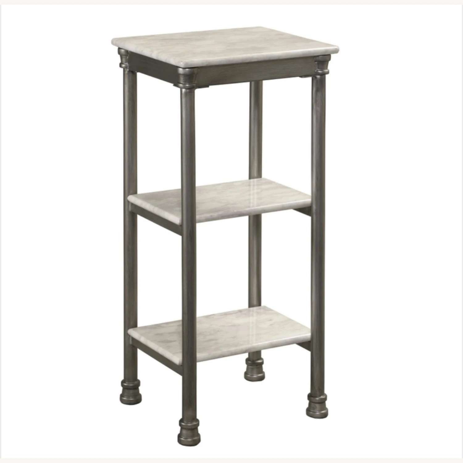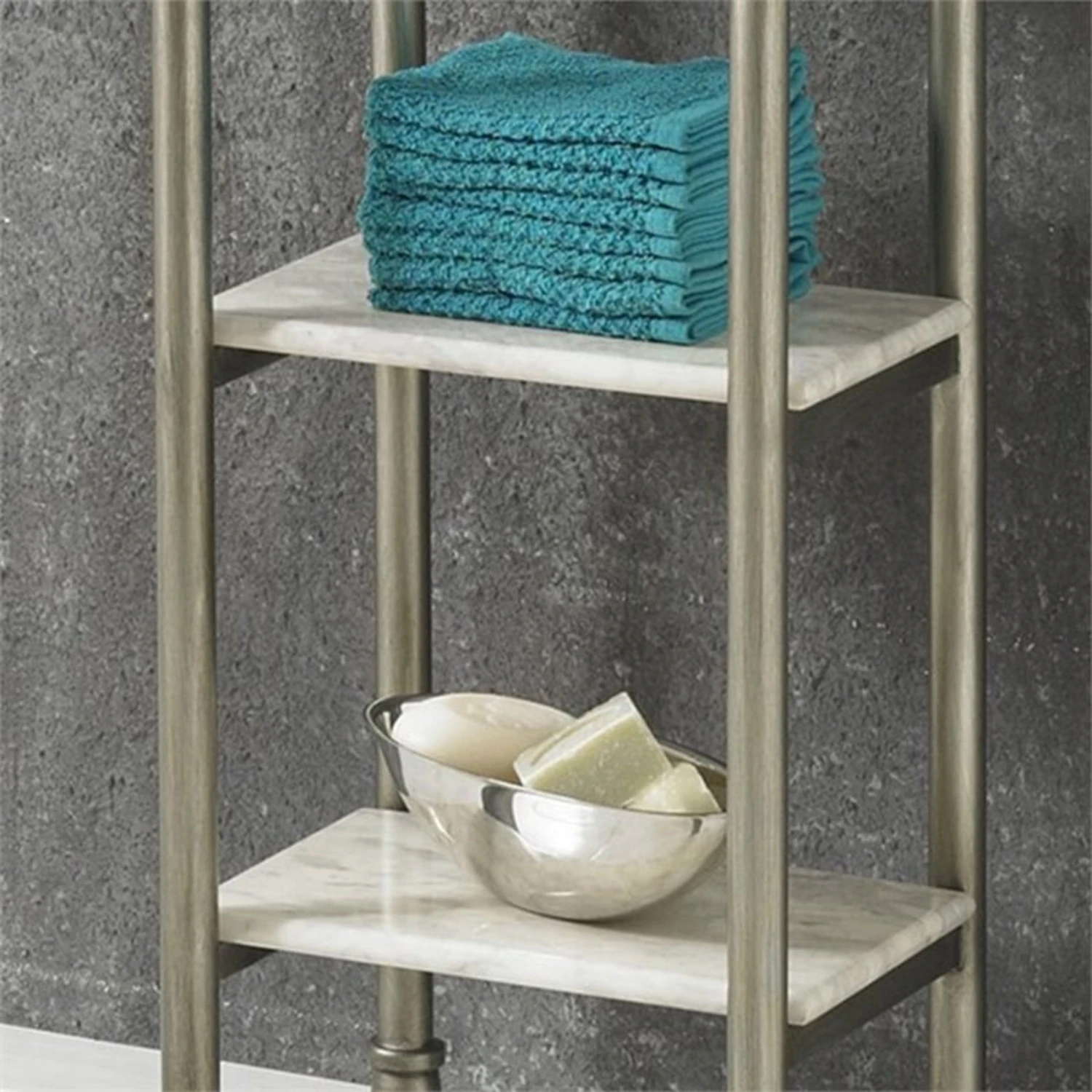 Seller’s Notes: Inspired by 18th century French Creole Cottages the slotted shelves with casted fitted feet and capped legs are reminiscent of French Quarter architecture. The Orleans Three Tier Tower by Home Styles is constructed of powder-coated metal with marble laminate shelves. This multifaceted storage shelf will meet all your storage needs and will complement any bathroom.