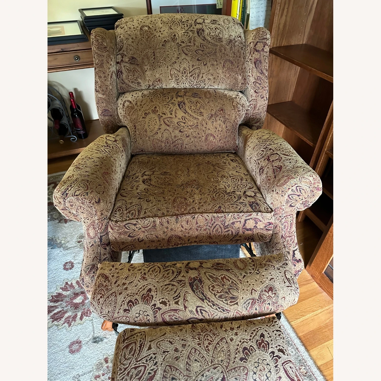 Seller’s Notes: We are moving and downsizing. This recliner served us well, but we need to let it go, asap. Fully extended, the seating is 37″ deep. It’s in excellent, full working condition. It’s been very well cared for, we kept protective covers on it. There is no real visible damage or wear. It looks new. Minimal effort to recline. Maximum comfort!