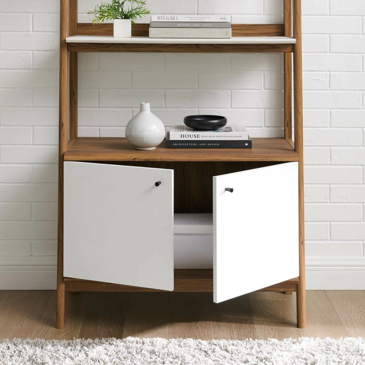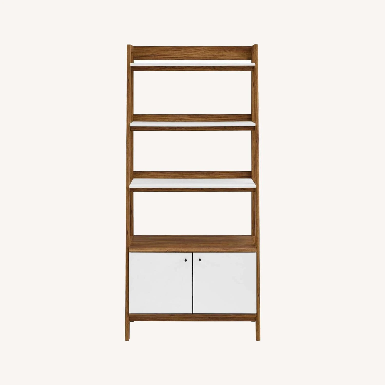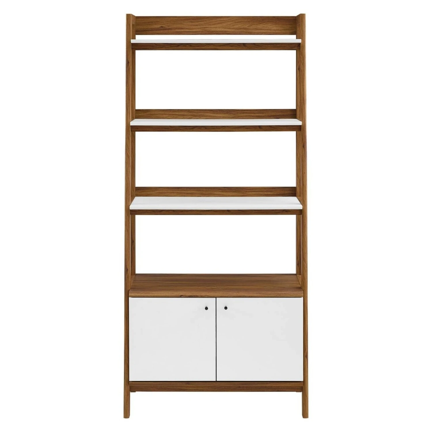 • Featuring a slim tiered silhouette, this bookcase blends organic wood grain with sleek white shelves to create beautiful contrast.