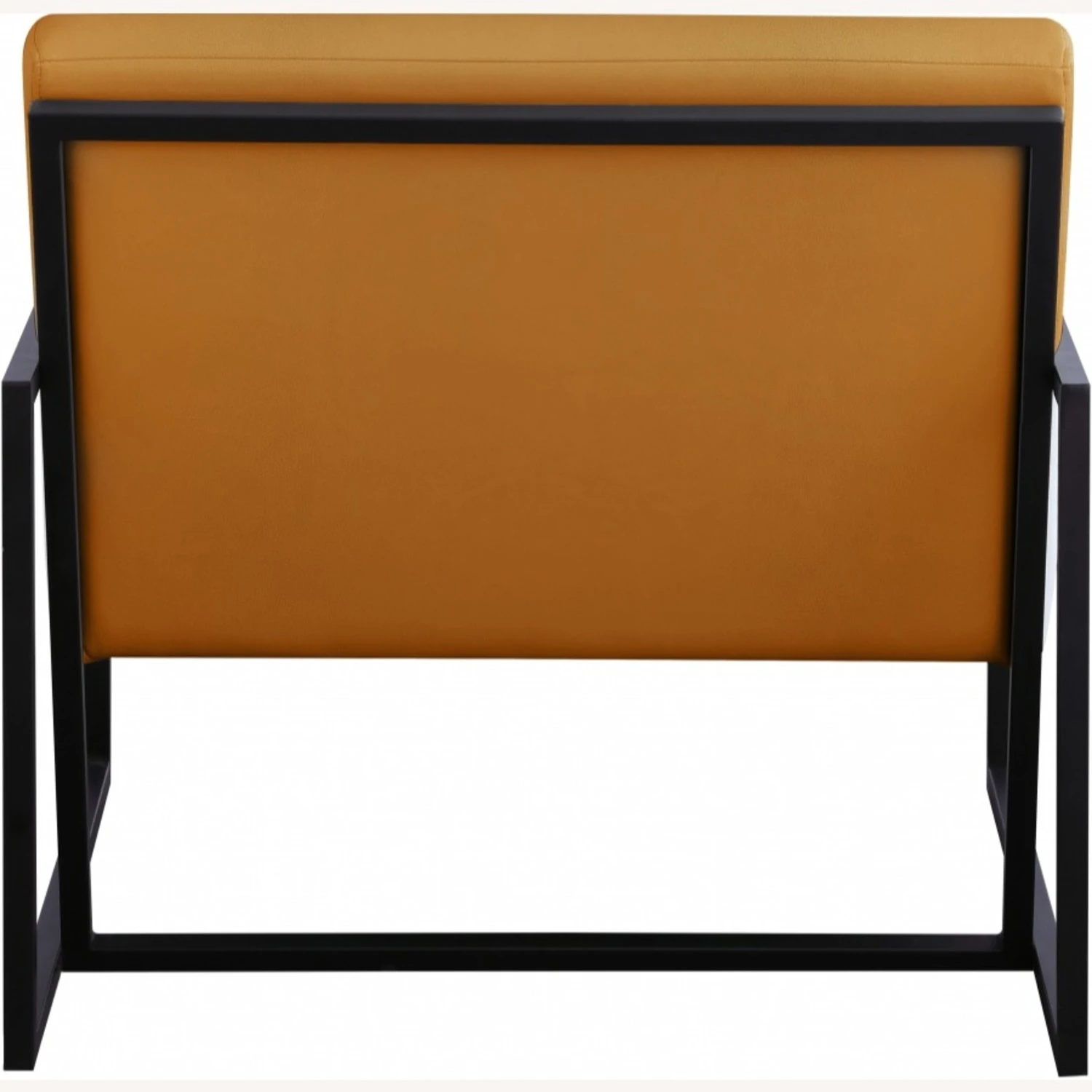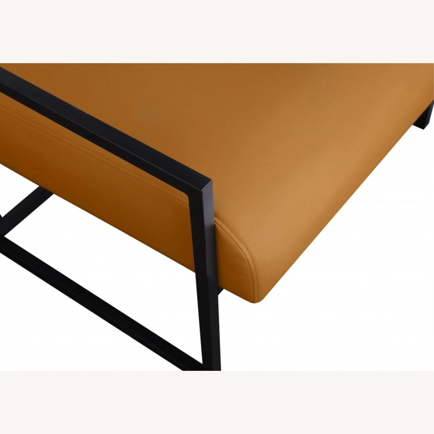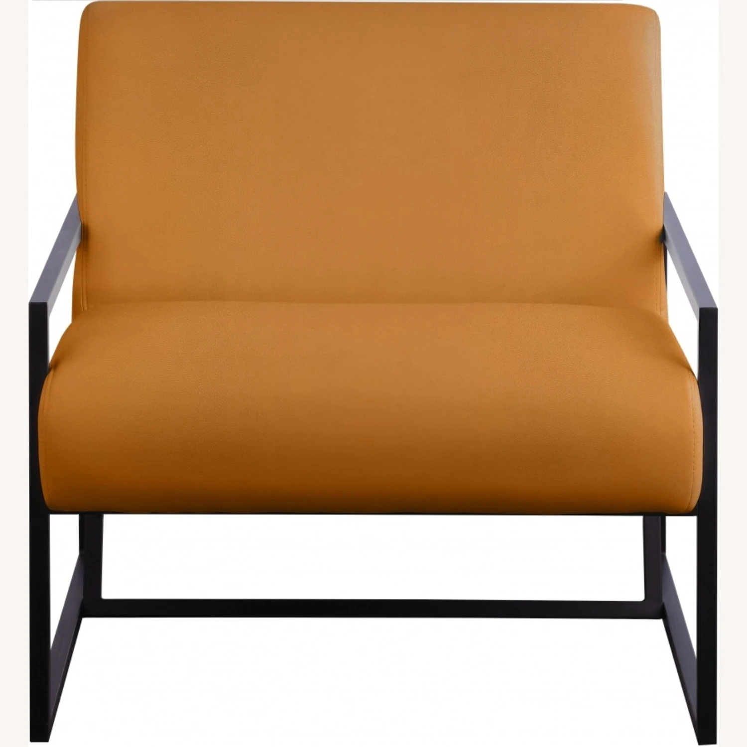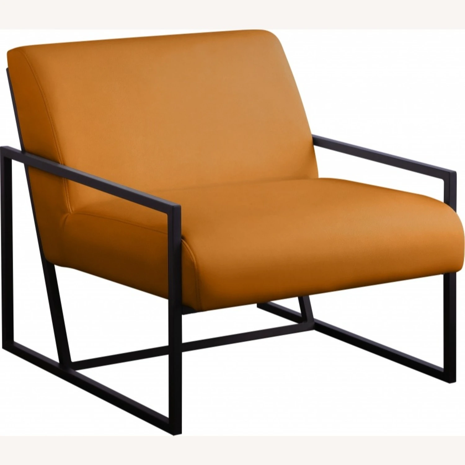 • This handsome chair catches the eye instantly with its softy cognac faux leather upholstery on the seat and back, both of which are padded for total comfort.