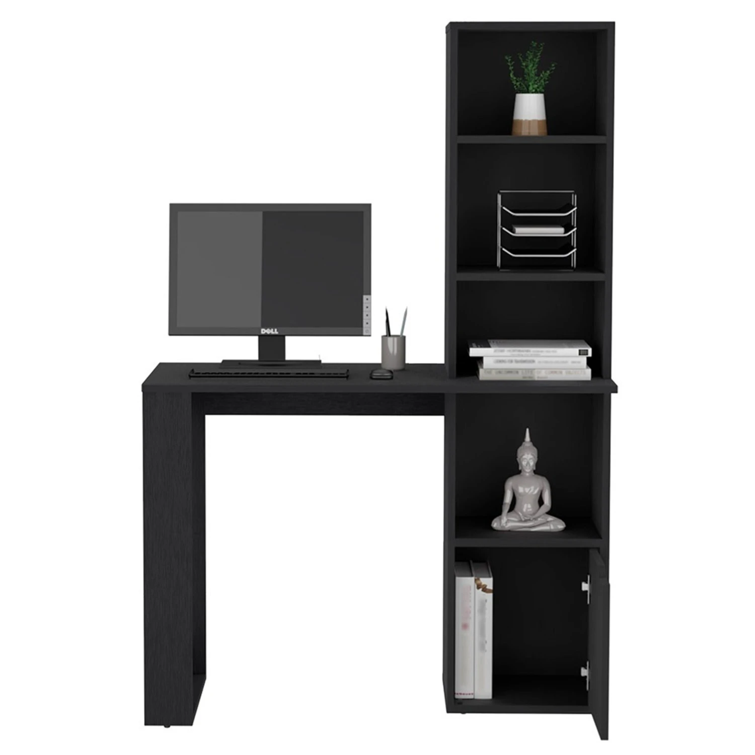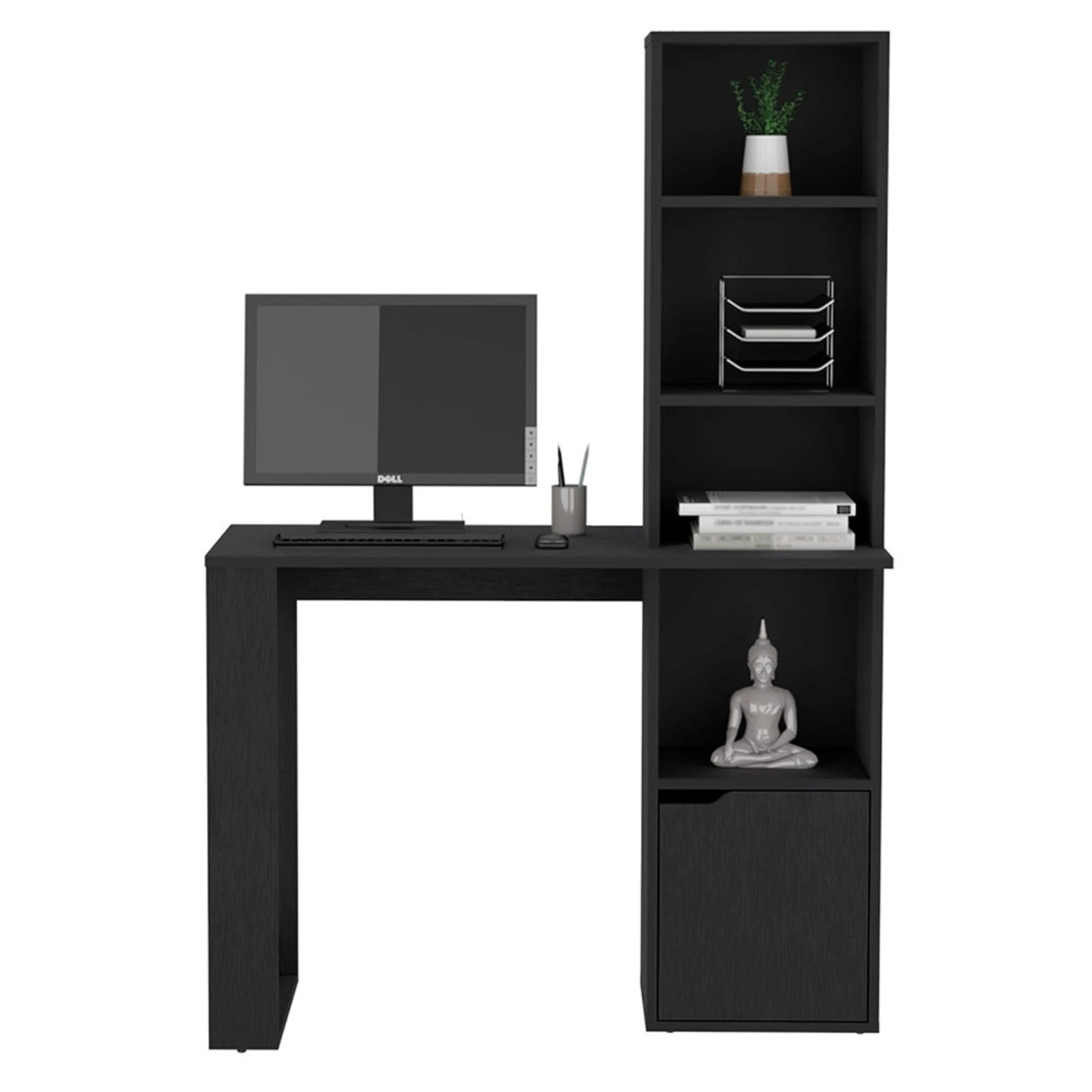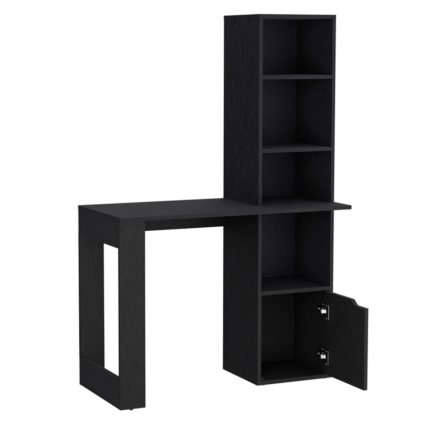 Nestled below the bookcase, you’ll find a convenient lower cabinet with a door (13.7″”H x 12.3″”W), offering discreet storage for office supplies or personal belongings. This thoughtful addition helps maintain a clutter-free workspace while keeping your essential items within easy reach.
