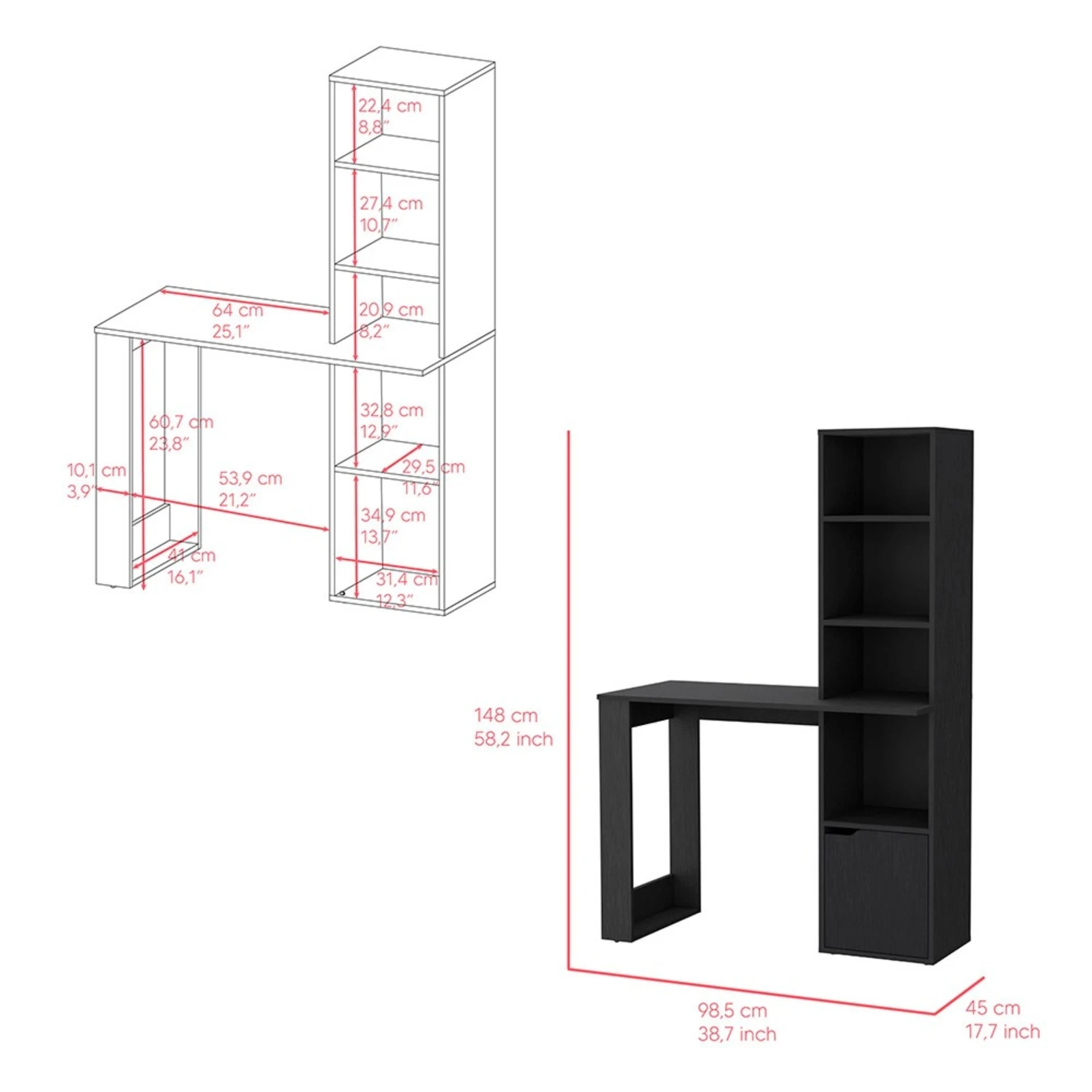 One of the standout features of this captivating desk is the integrated four-tier bookcase (12.2″”W), providing ample space for storing and displaying your reference materials, binders, and decorative items. This unique design element keeps your workspace organized and adds a touch of sophistication to your office environment.