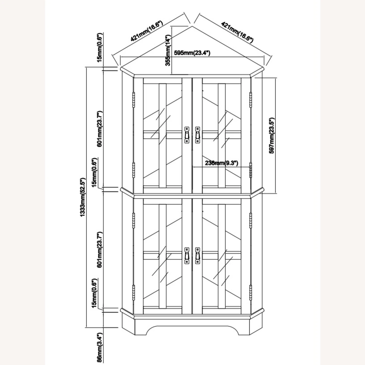 • Four clear tempered glass framed doors protect your items while allowing you access