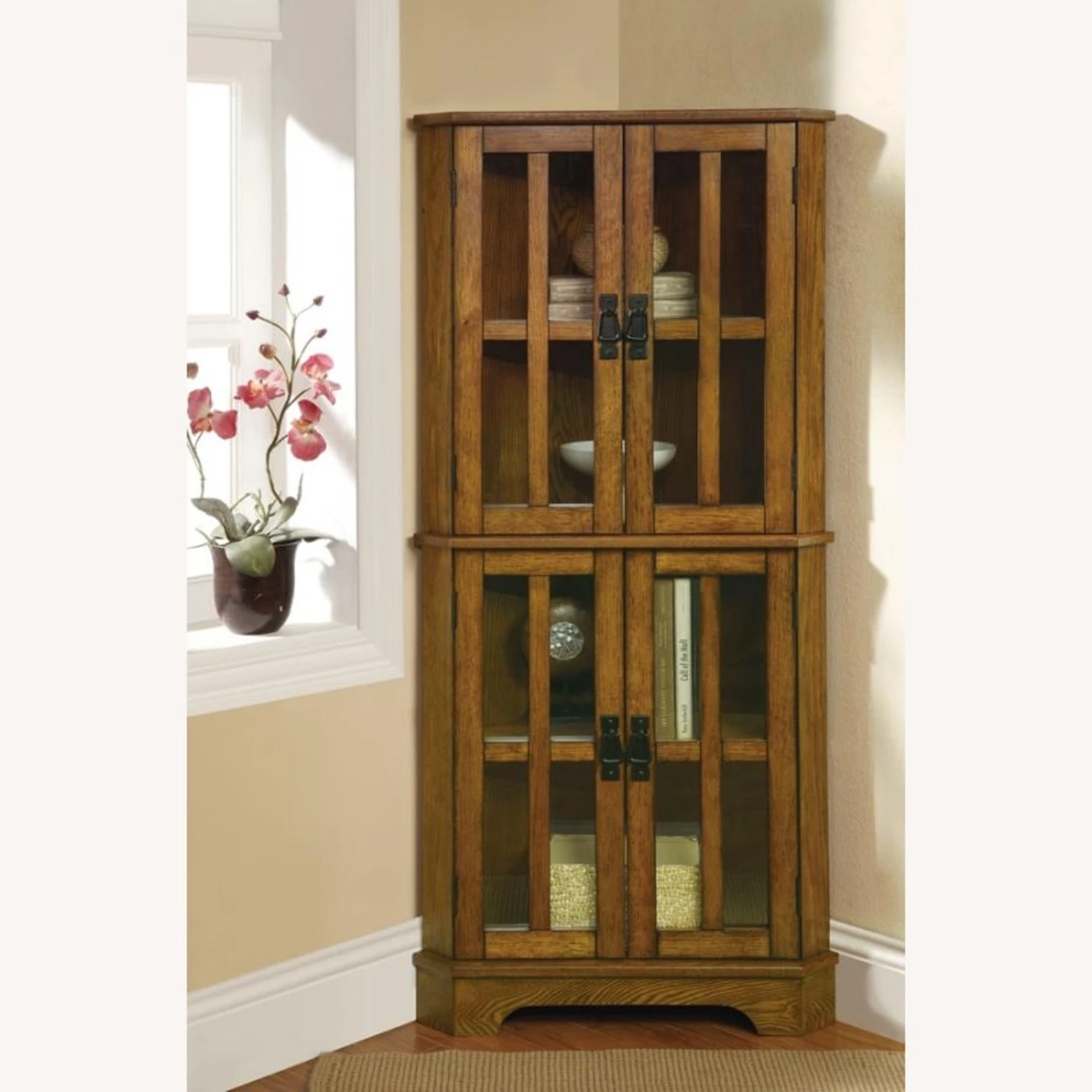 • Rustic and traditional styles combine in this curio cabinet