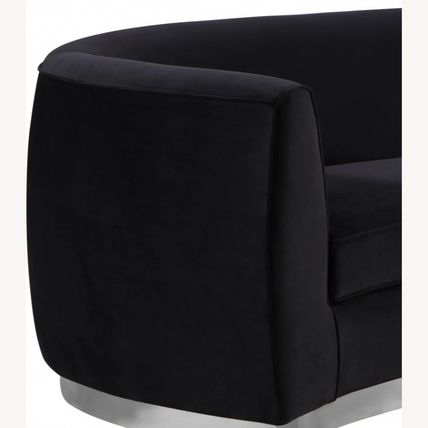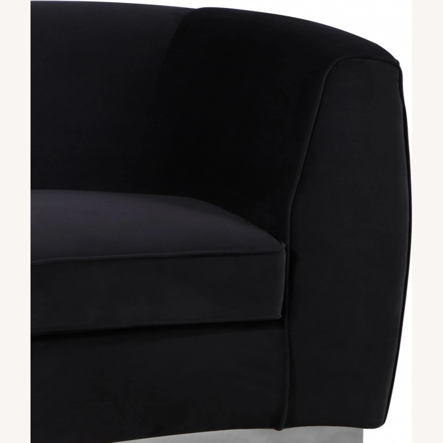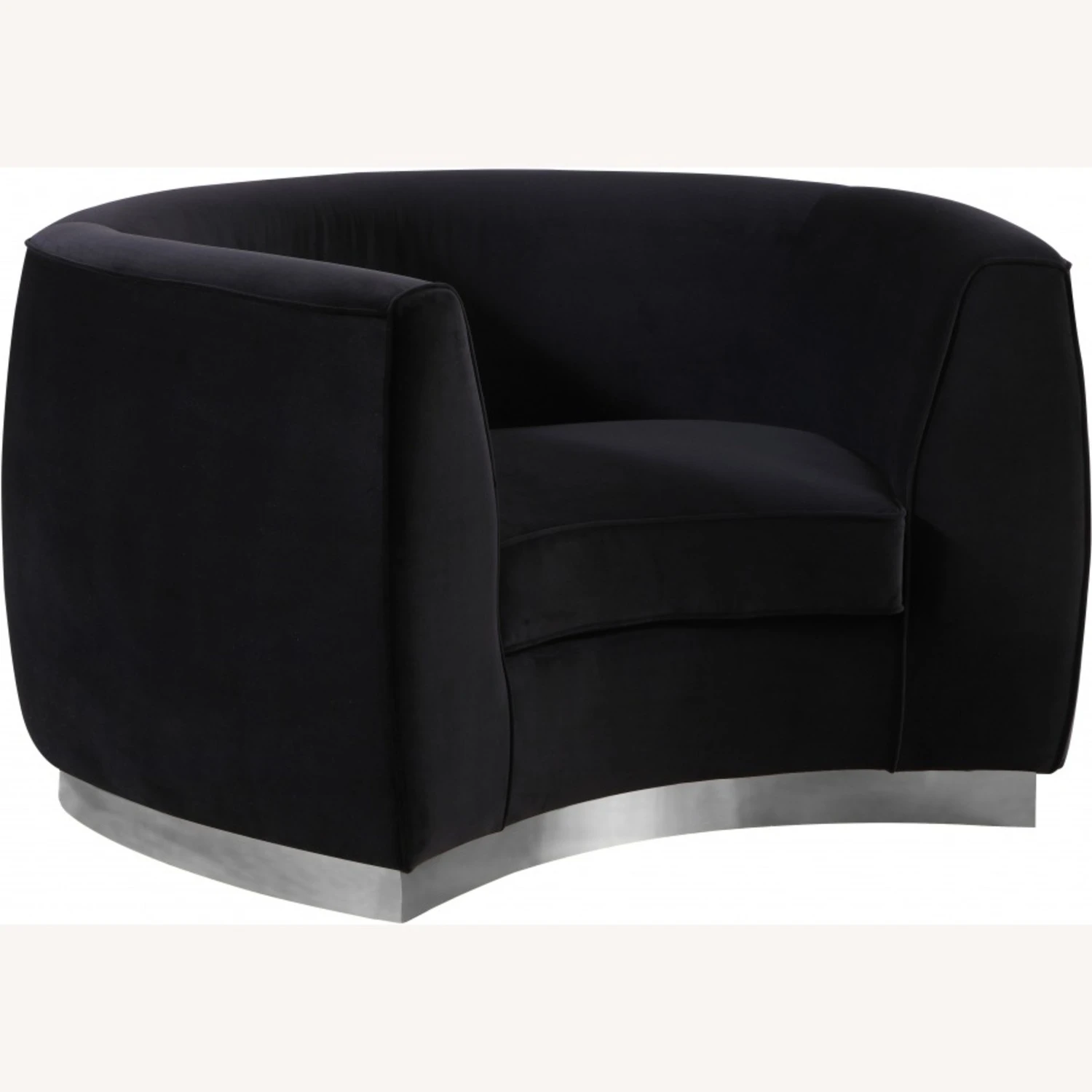 • This collection features beautifully upholstered velvet with a chrome stainless steel base.