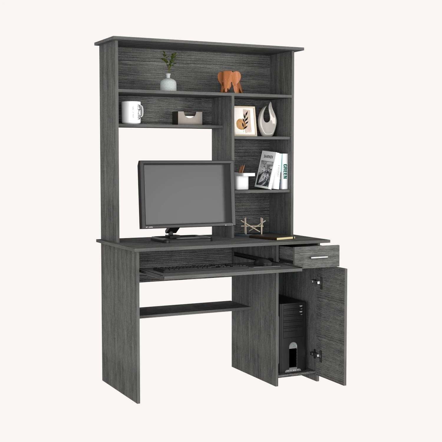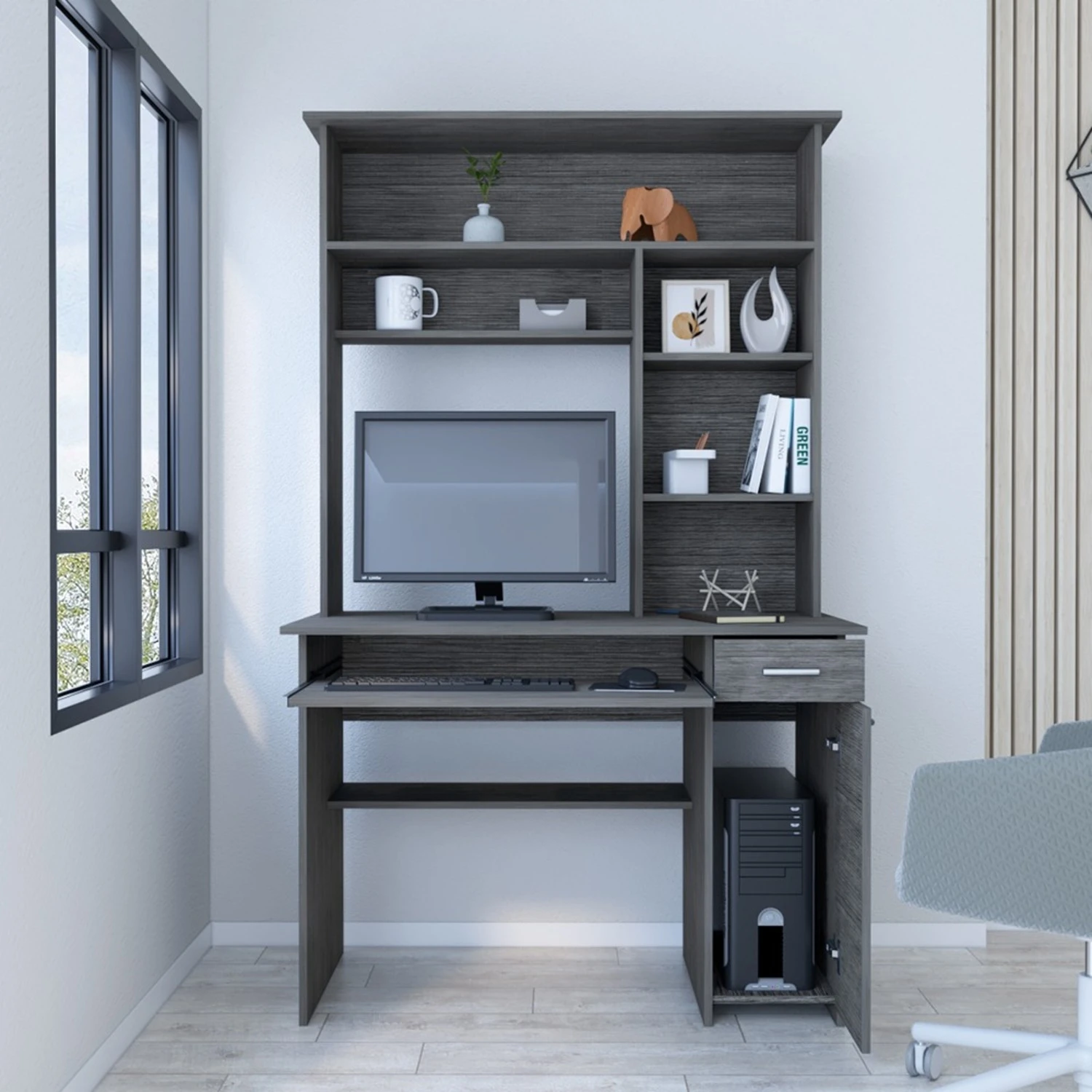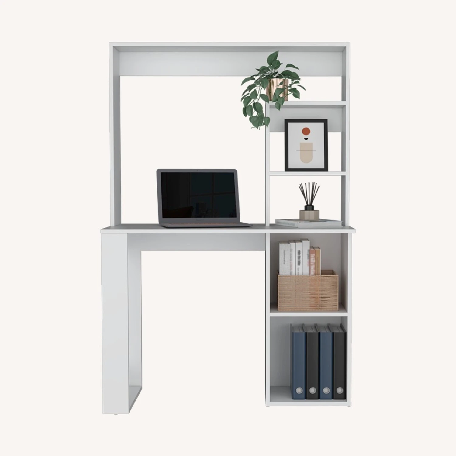 Seller’s Notes: “Looking for a desk that combines style and functionality? Look no further than the Desk Ryndon. This compact Desk boasts a sleek and modern design, with an ample work surface (38,8”W X 17,7”D) that is perfect for your computer or tasks. The Desk also includes a hutch and five spacious shelves, providing plenty of space to store your office essentials and display your favorite decor items. With ample legroom space, this Desk is stylish and comfortable to use for extended periods. Designed with an elegant white manufactured wood finish.