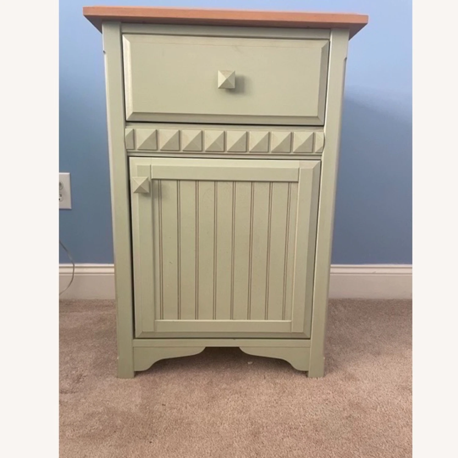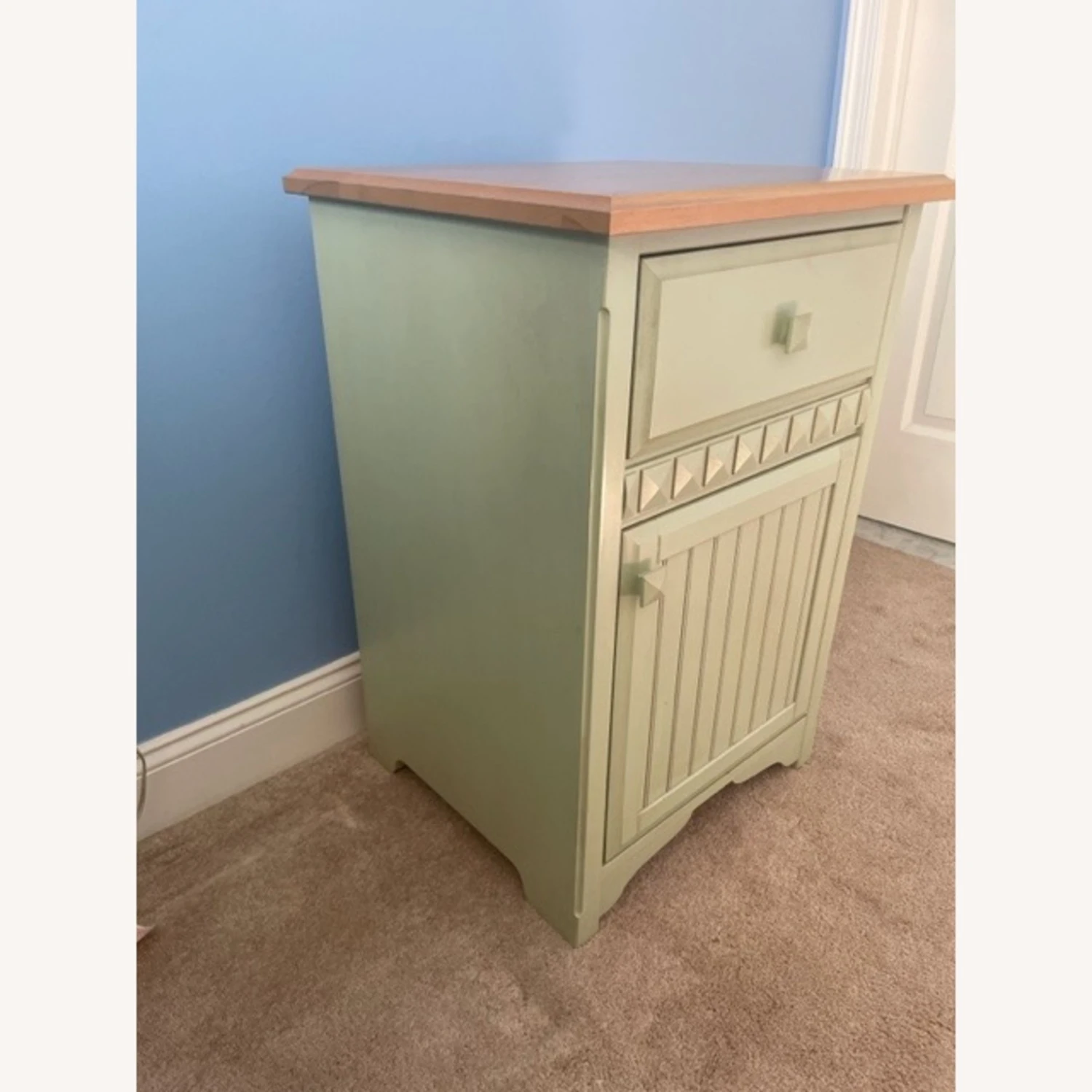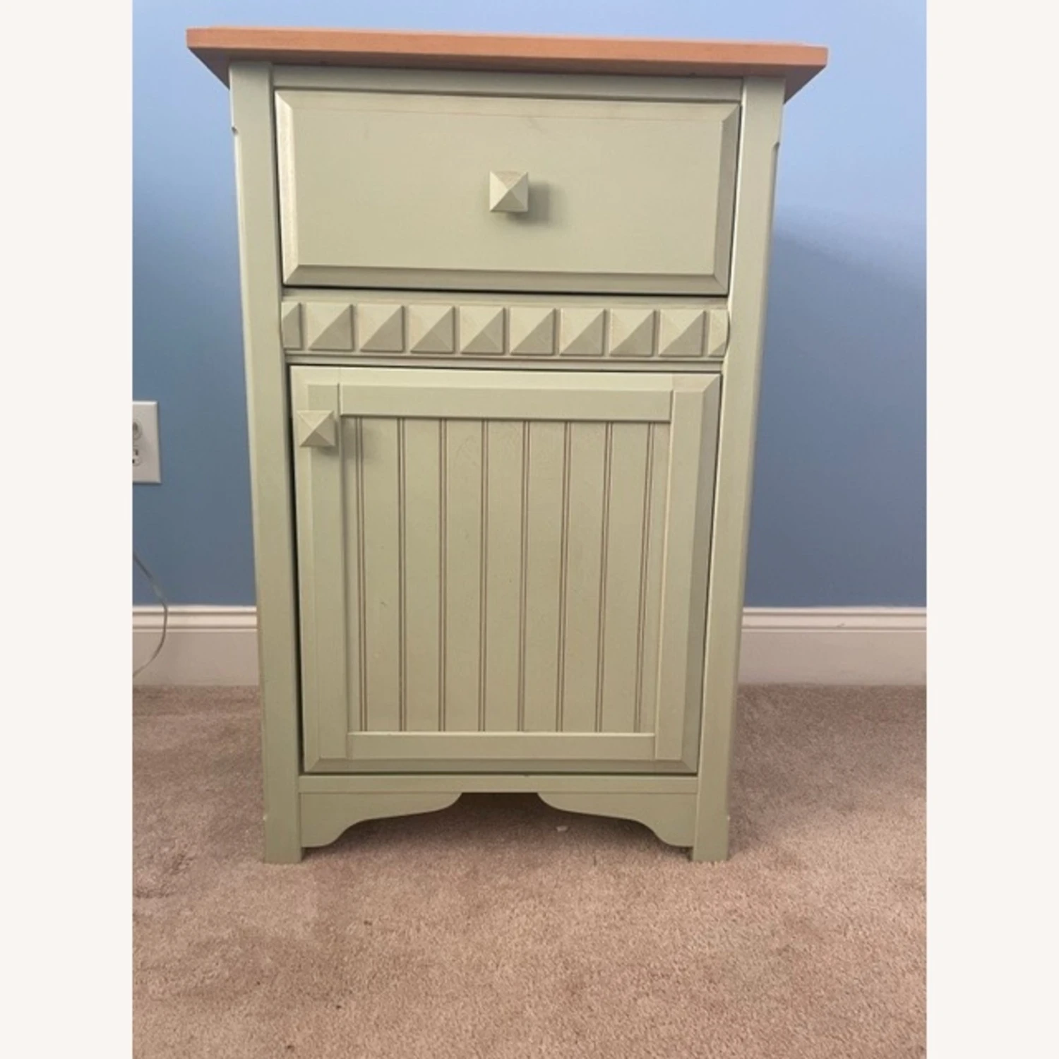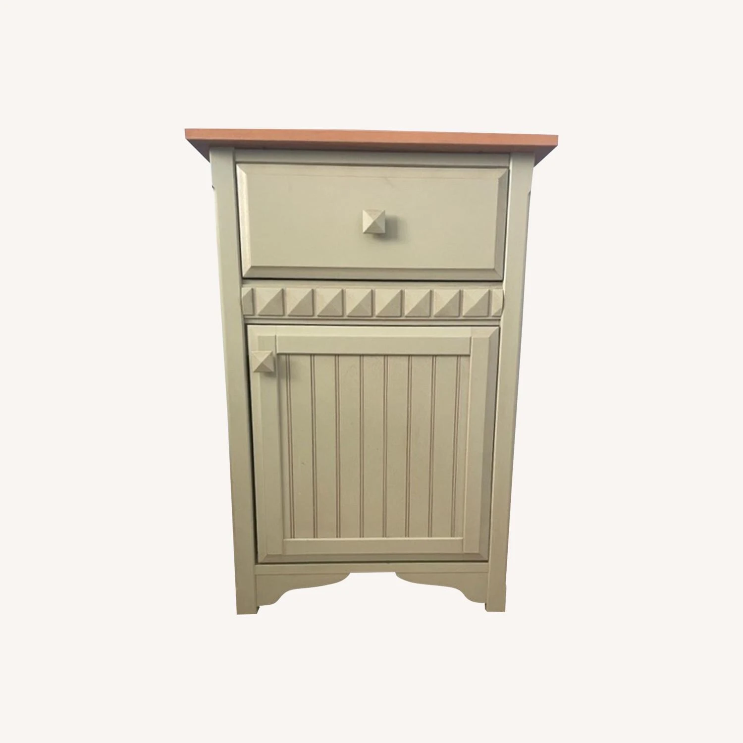 It has one drawer and one door. No scratches or stains.