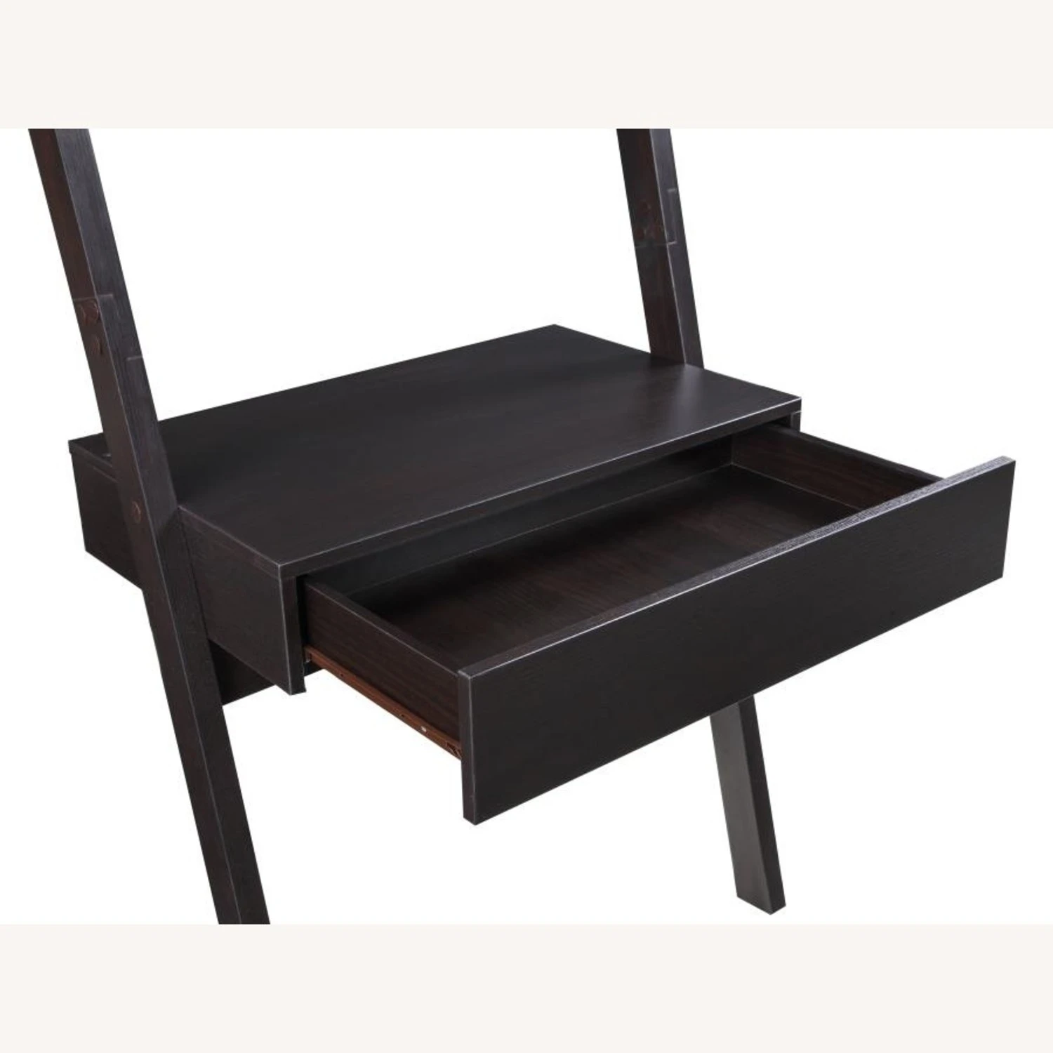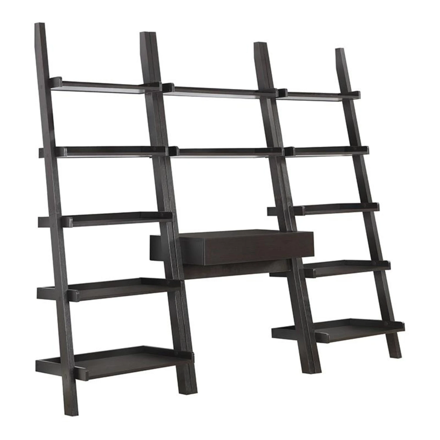 • Ladder desk features two overhead rimmed shelves and a single drawer with Euro glides