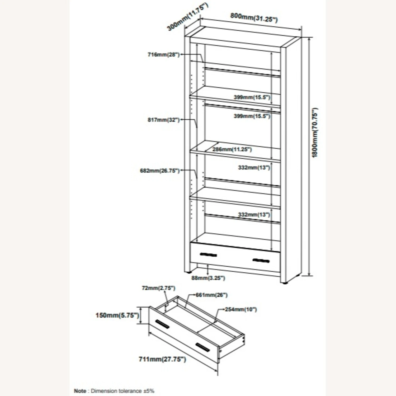 Overall Dimensions: Width: 31.5 inches, Height: 70.75 inches, Depth: 11.75 inches