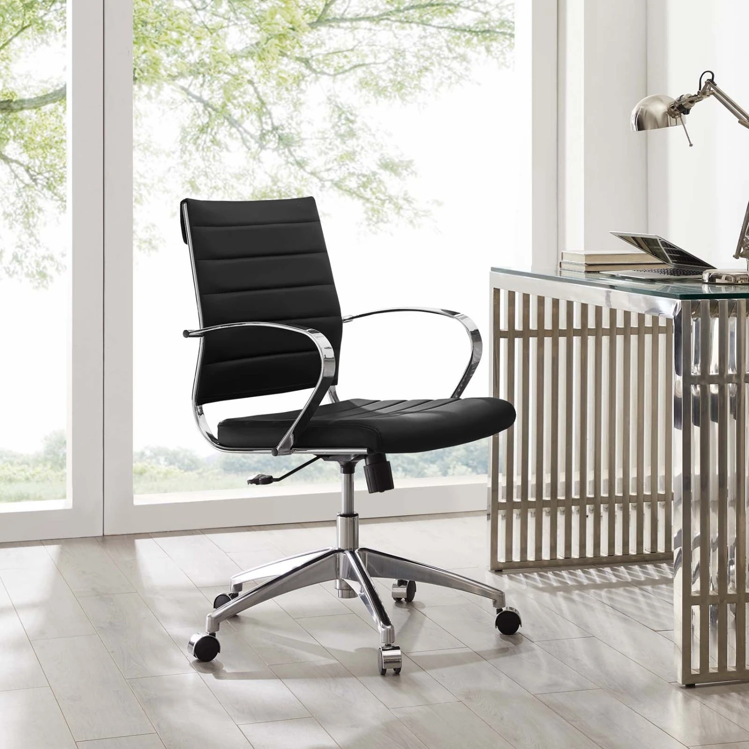 • Functionally, it is a pleasure to sit in as the durable ribbed faux leather back provides natural posture support.