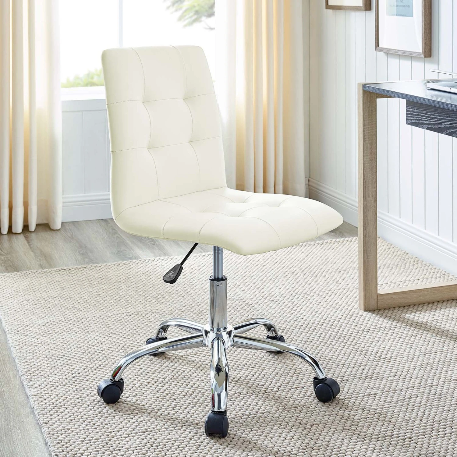 • Etiquette presides over this properly styled armless office chair.