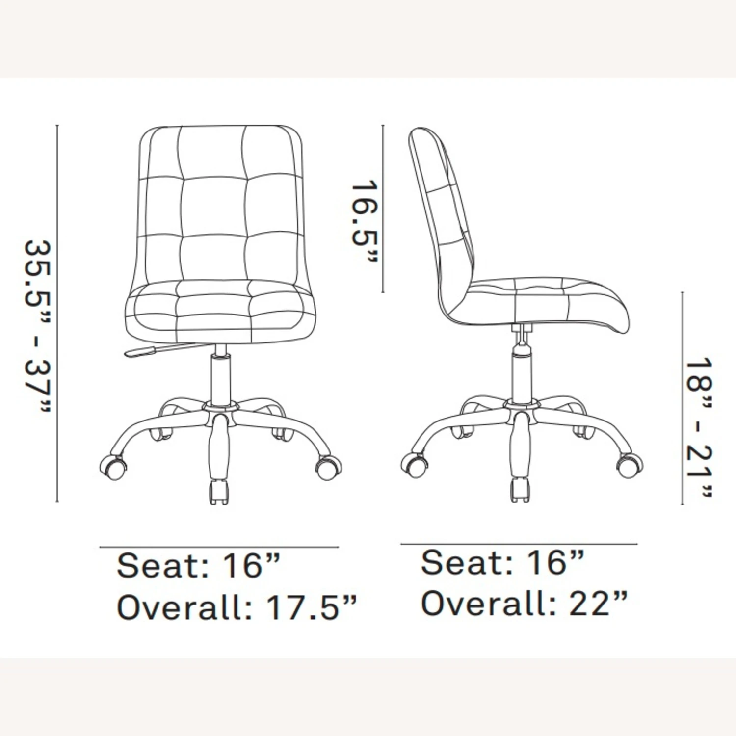 Seat Dimensions 16.5″L X 18″W X 17.5 – 21″H