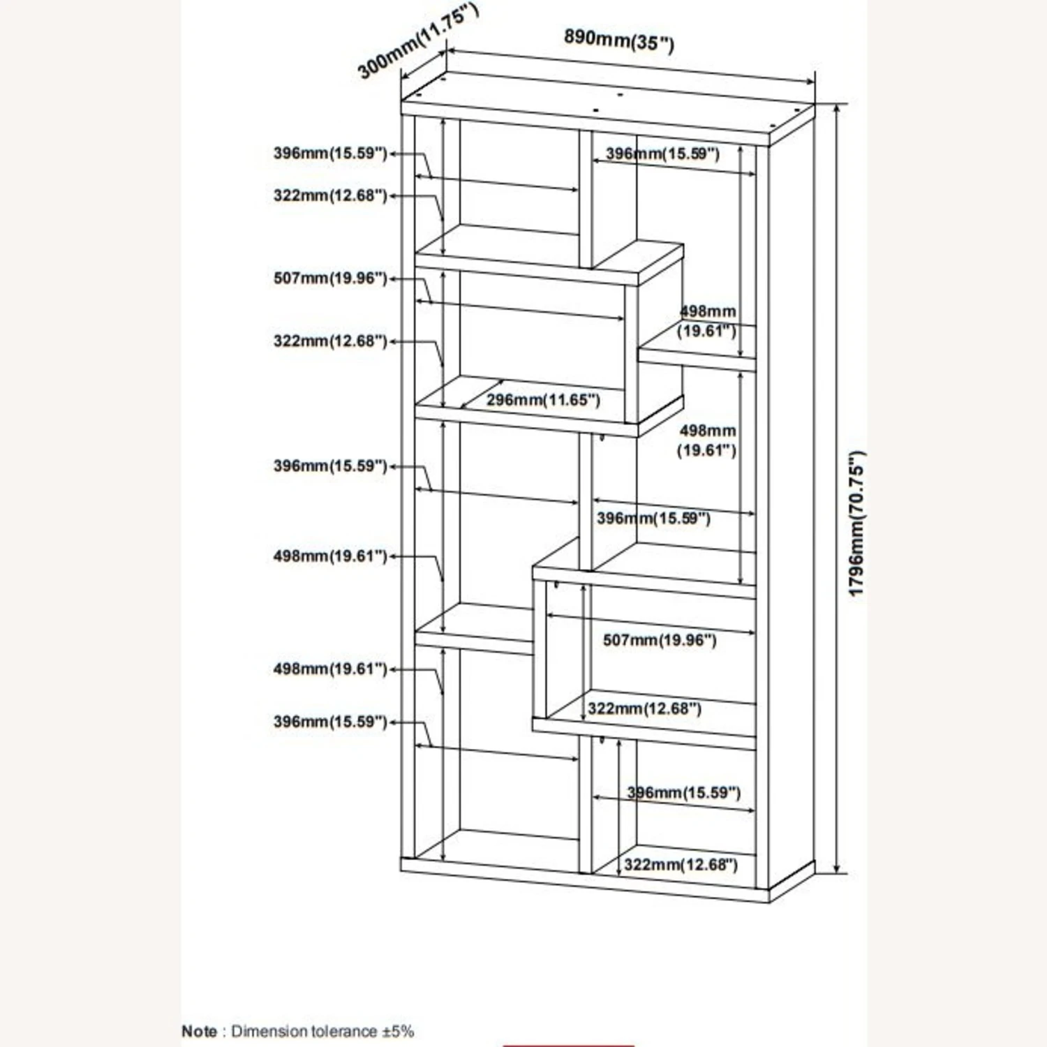 Overall Dimensions: Width: 35 inches, Height: 70.5 inches, Depth: 11.75 inches