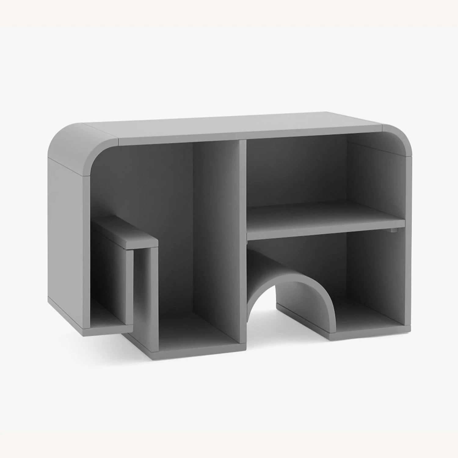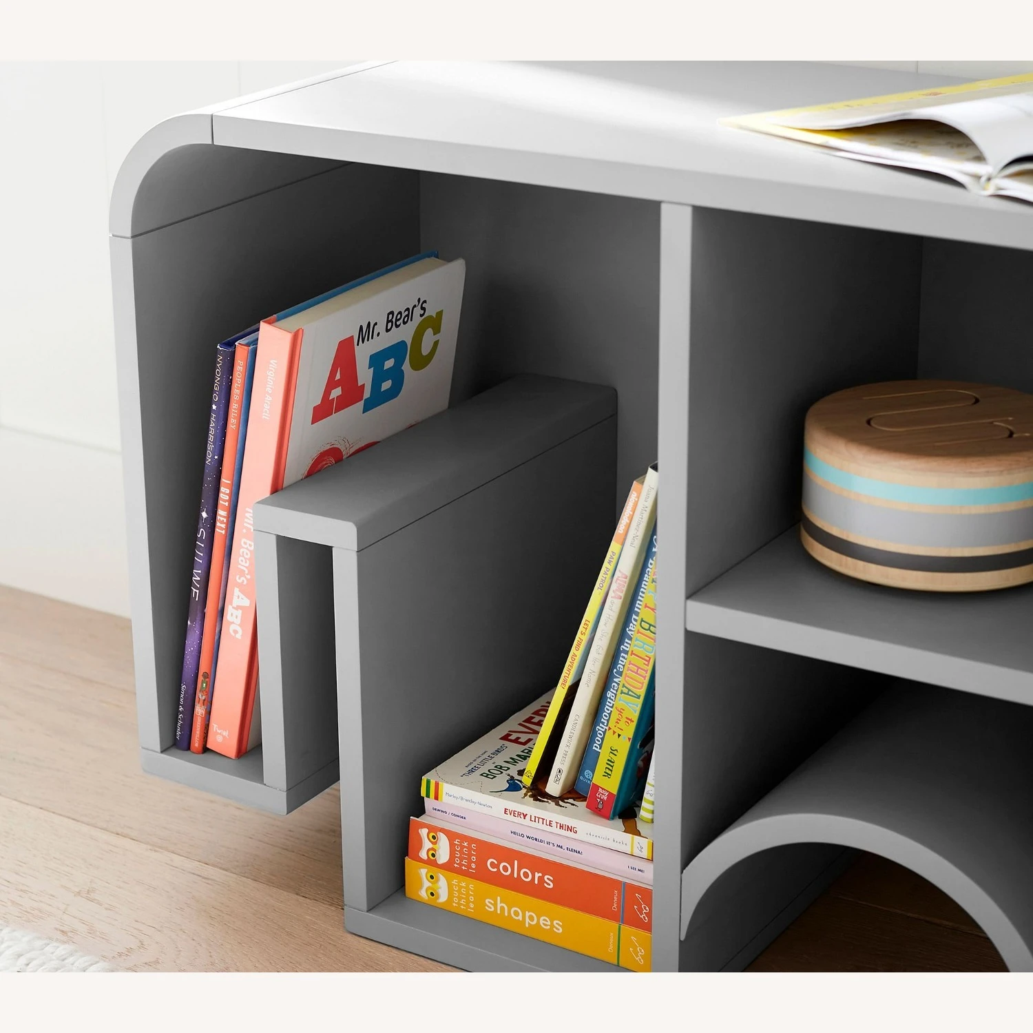 Seller’s Notes: What’s utterly cute, practical and shaped like an elephant? Our Ellie the Elephant Bookcase, of course! Featuring one fixed top shelf and plenty of sections, this gray piece helps little ones organize their books and toys in a very big way. DETAILS THAT MATTER Expertly crafted from solid poplar wood and MDF. Crafted with mortise-and-tenon joinery for structural integrity. Frame is hand finished in child-safe, water-based gray. Features 1 fixed shelf. KEY PRODUCT POINTS Pottery Barn Kids exclusive. All Pottery barn kids juvenile products are tested at 3rd party CPSC accredited labs to meet or exceed all industry voluntarily and regulatory safety requirements. Anti-tip kit included: comes with safety-tested mounting hardware, instructions and a nylon strap. To prevent injuries from furniture tip-over, this item should be permanently fixed to the wall. Imported.