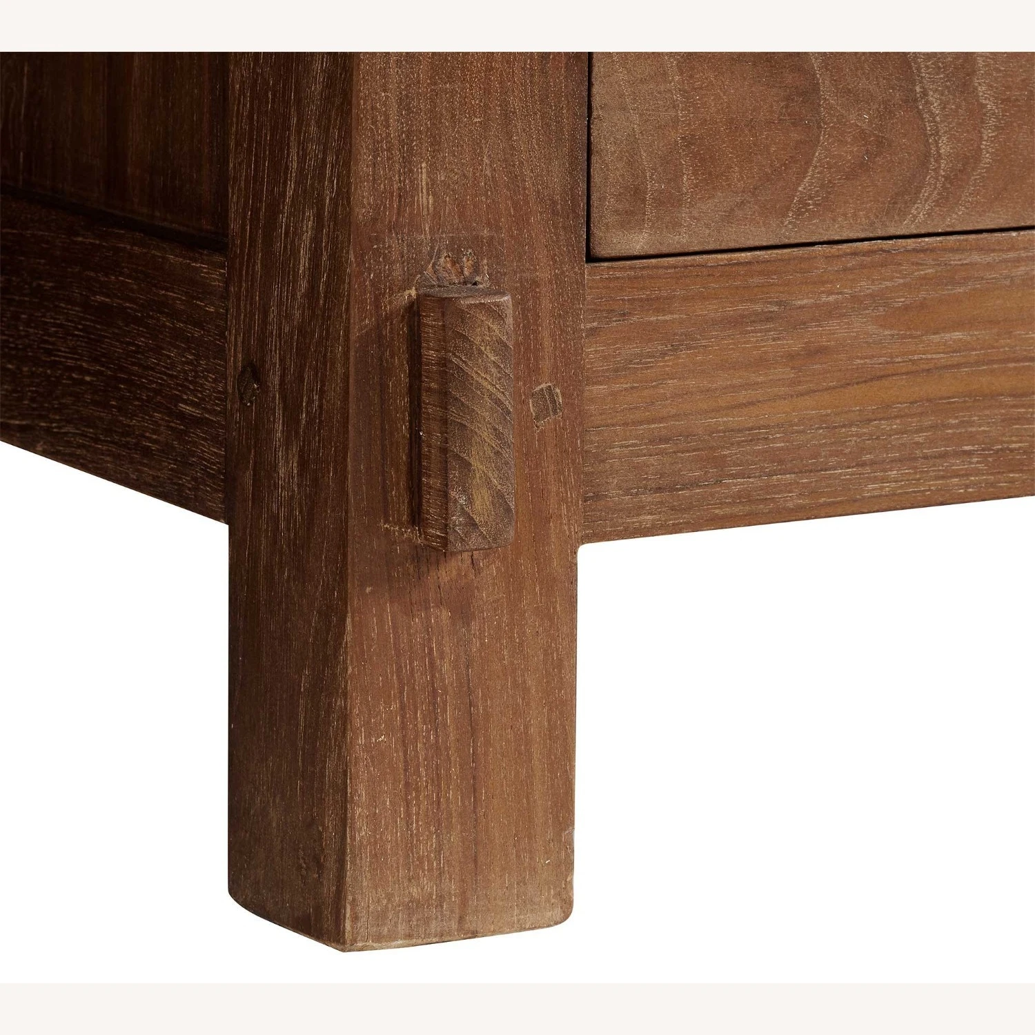 Crafted of teak, an ultra-durable hardwood that stands up to the elements and takes on a beautiful silvery patina over time.