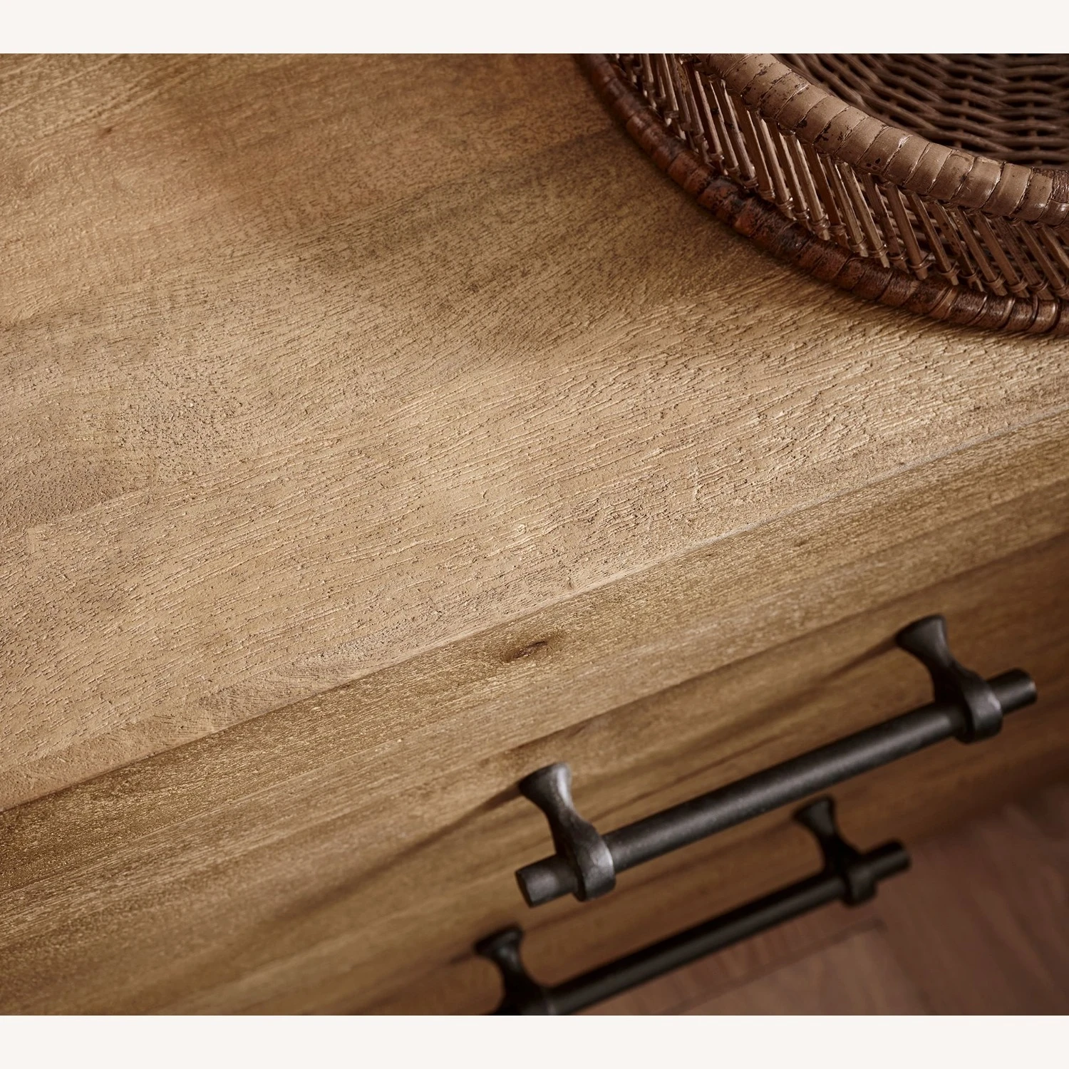 Crafted of Mango wood and Acacia wood with an Heirloom Wheat finish.