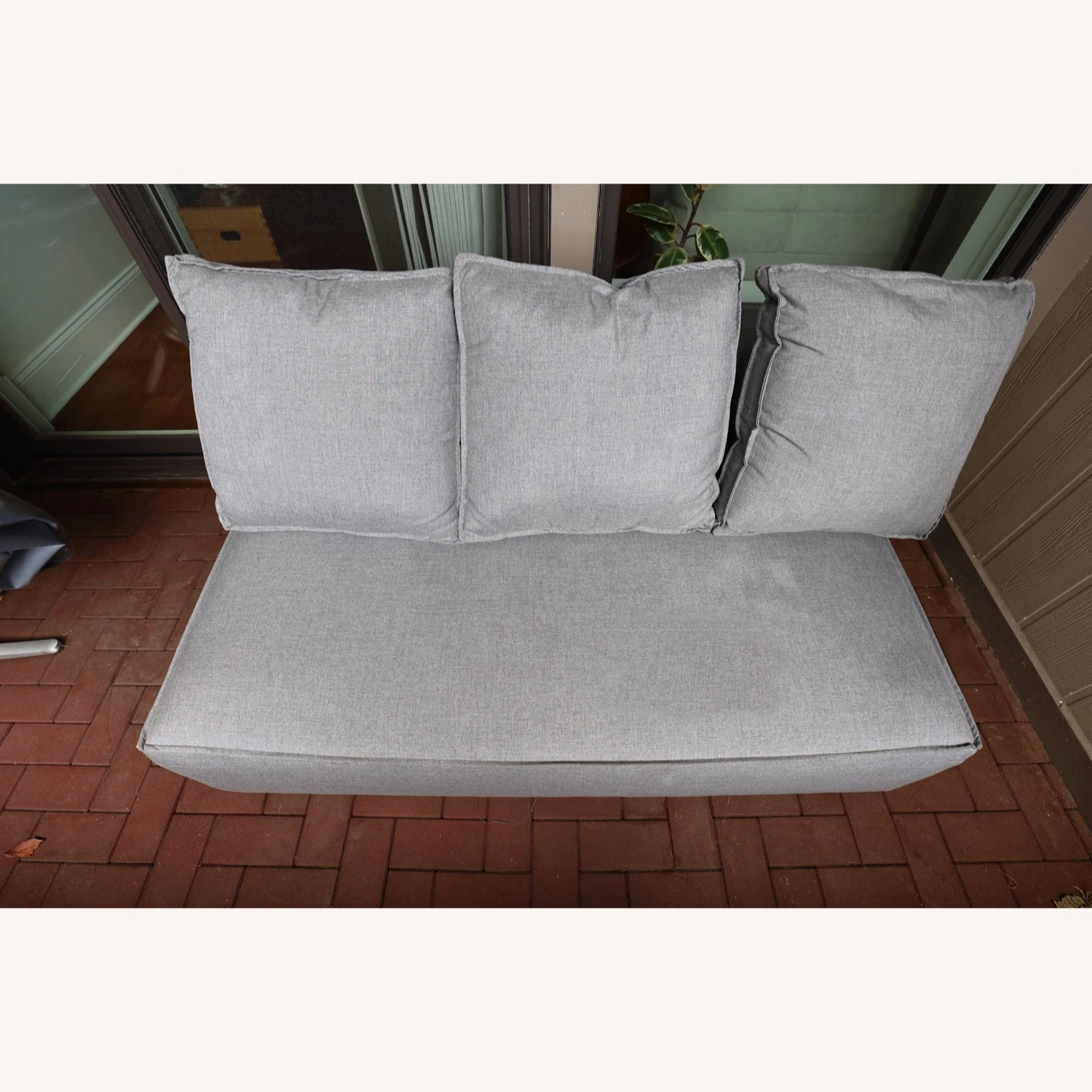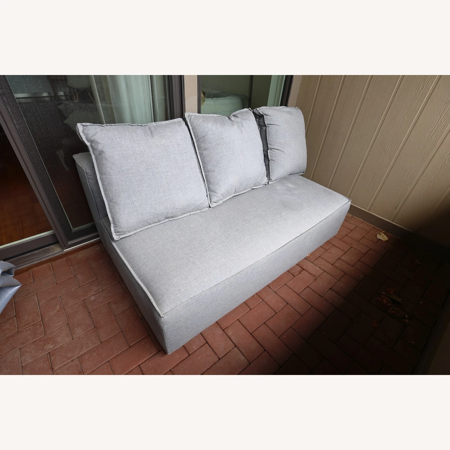 For sale is a Room & Board Oasis Armless Chair in Misty Charcoal color. We have this chair for four years and it has been protected by a waterproof heavy duty tarp throughout all these years, no damage from UV or moisture during all these years.