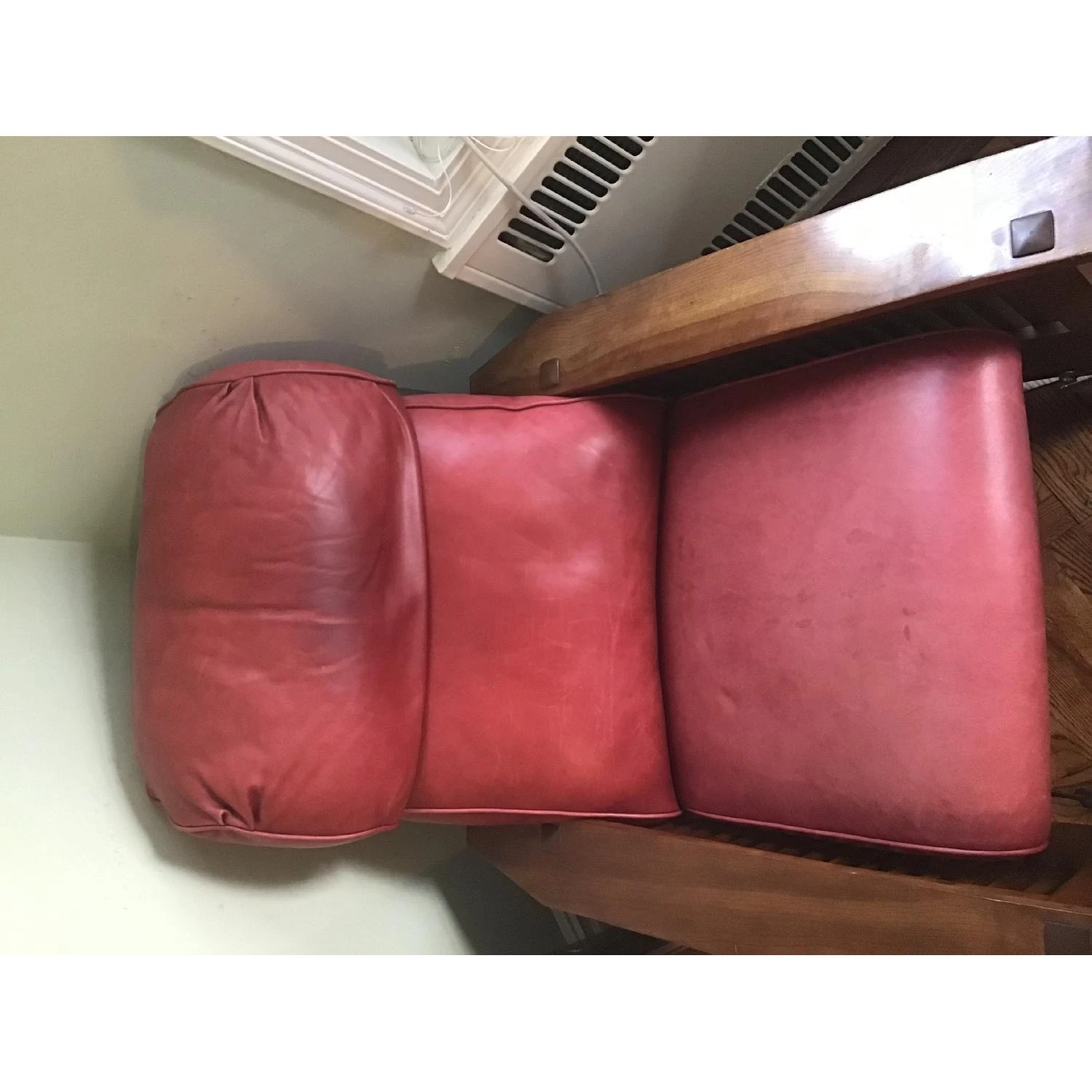 Seller’s Notes: A beautiful red vintage looking chair and ottoman set looking to be in home. This chair reclines for extra comfort but still keeps it’s amazing style. The set is satisfactory condition due to the discoloration and fading of the cushioning.