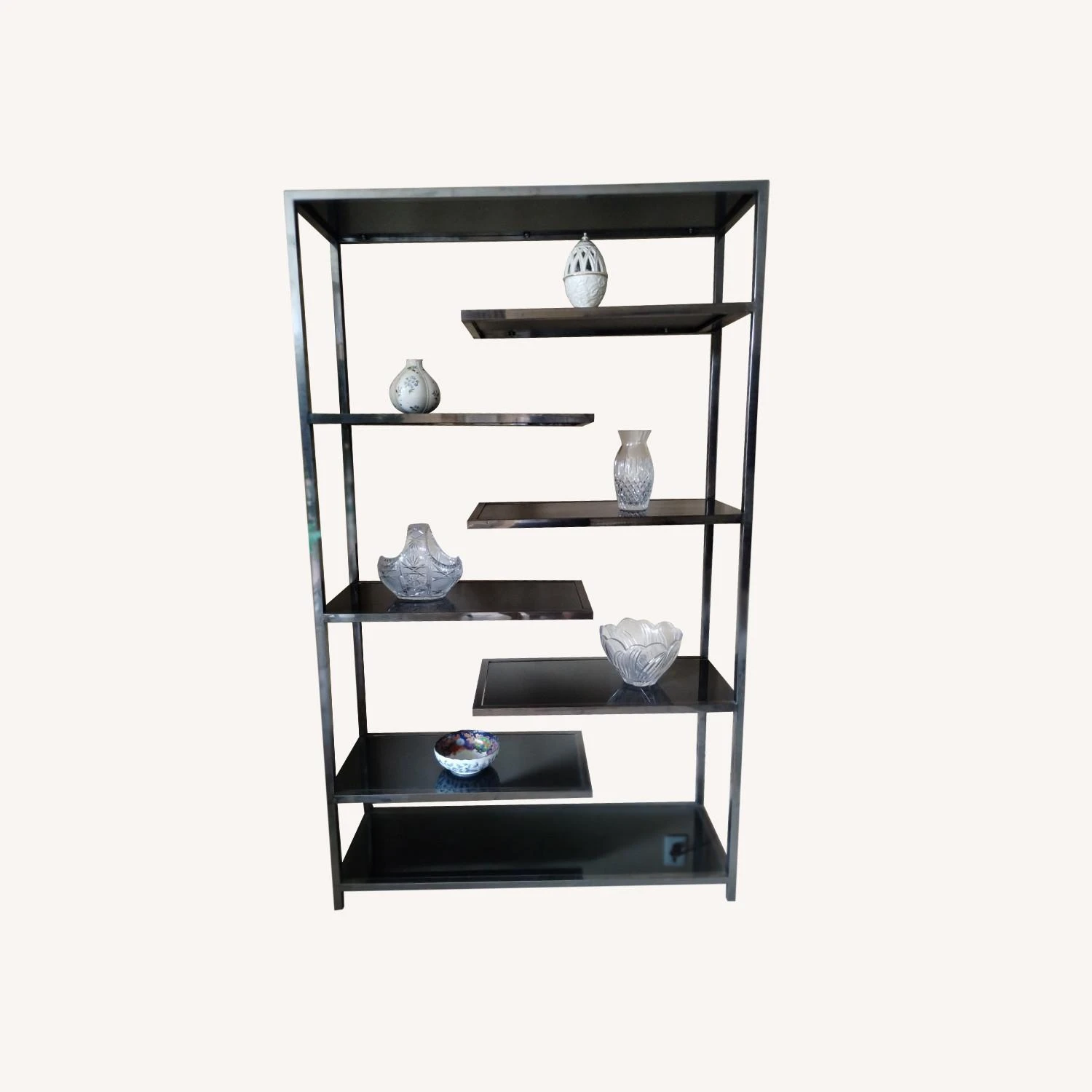 Seller’s Notes: * Modern 7 shelf Chrome and Black Glass Unit