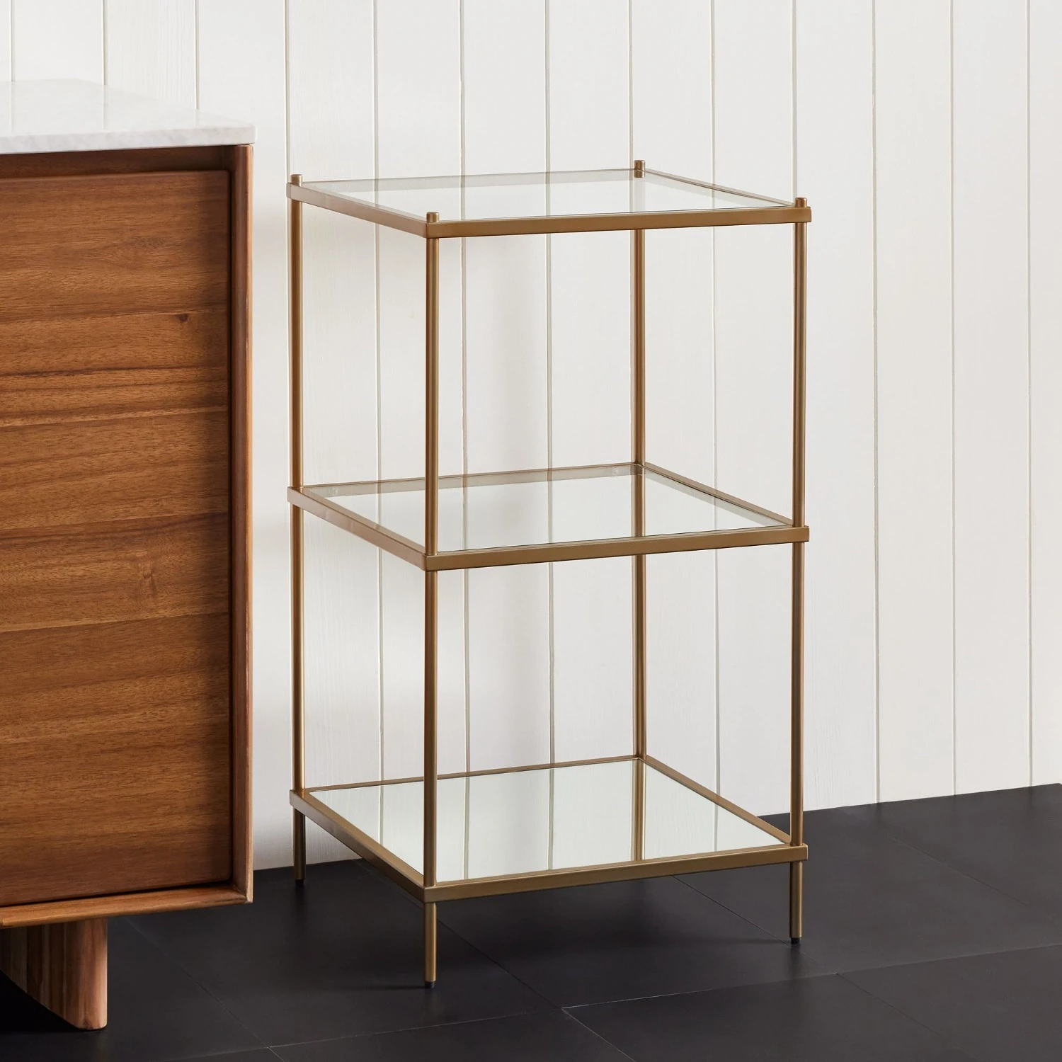 Mirrored bottom shelf.
