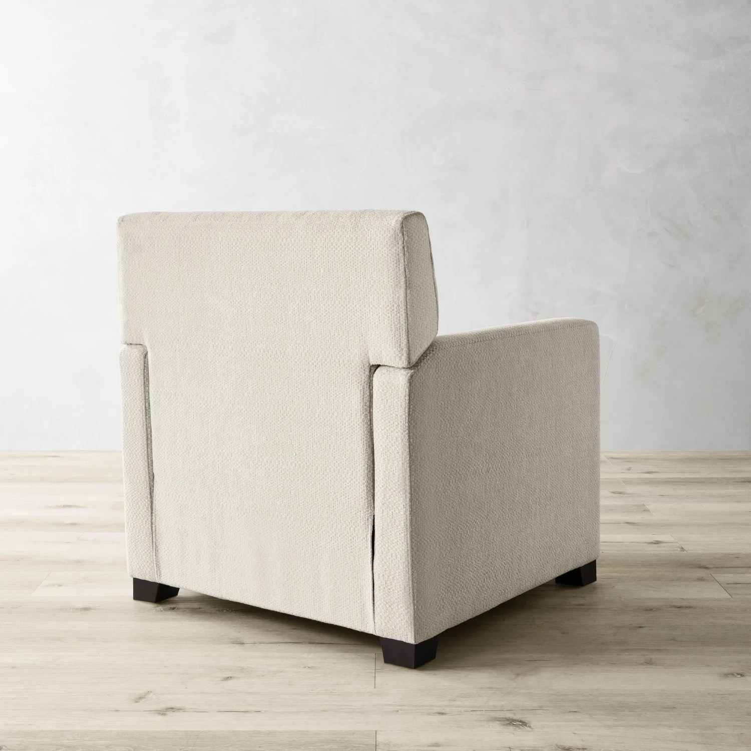 Smooth, handle-free reclining mechanism is concealed in frame.