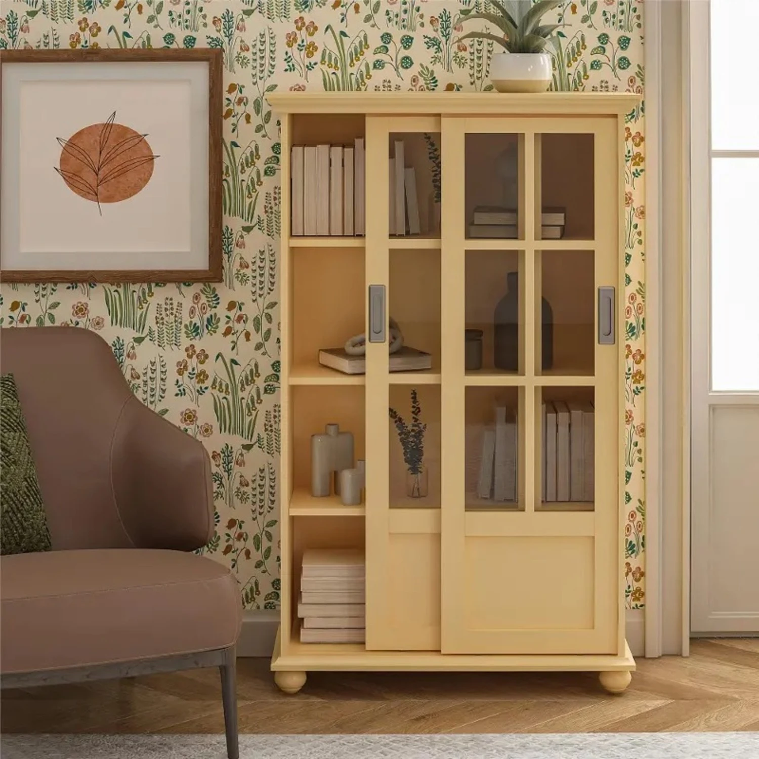 Seller’s Notes: Aaron Lane Bookcase with Sliding Glass Doors is a practical and simple design to your home. This Bookcase includes 4 shelves behind the 2 sliding doors for storag