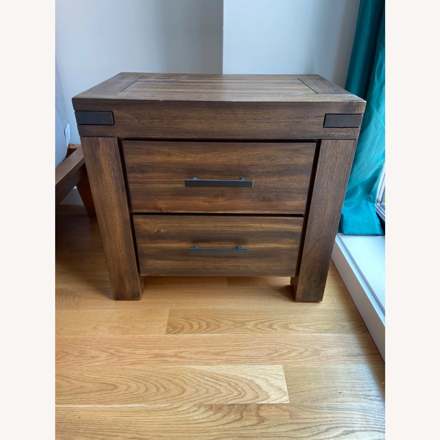 Seller’s Notes: Zen style, solid acacia wood bedside table lends itself to a calming decor perfect for bedrooms. Matte black metal pulls and wire brush finish gives an elevated look. Truly in excellent condition with no scratches, blemishes or defects. I’m redecorating.